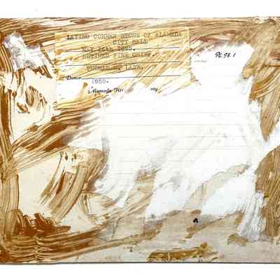 Description: Sepia-toned albumen print mounted on it. tan paperboard. Photographer unknown. Some fading of image. Inked description notation is entered along the lower margin of the mounting.