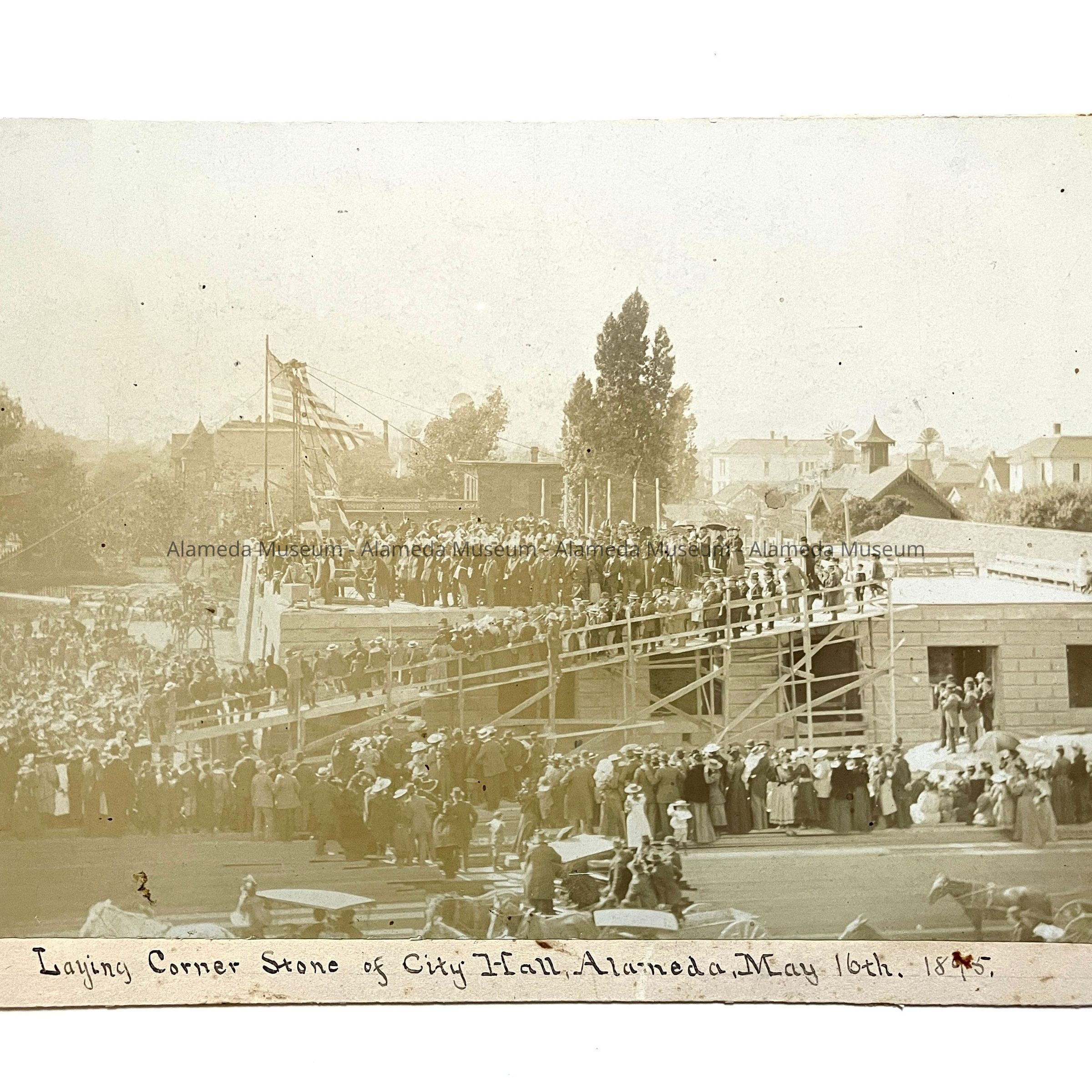 History of Object: View of the cornerstone laying ceremonies by the Alameda Masonic Lodge of the new City Hall, May 16, 1895. (Same image as Acc. No. 96.92.1.)