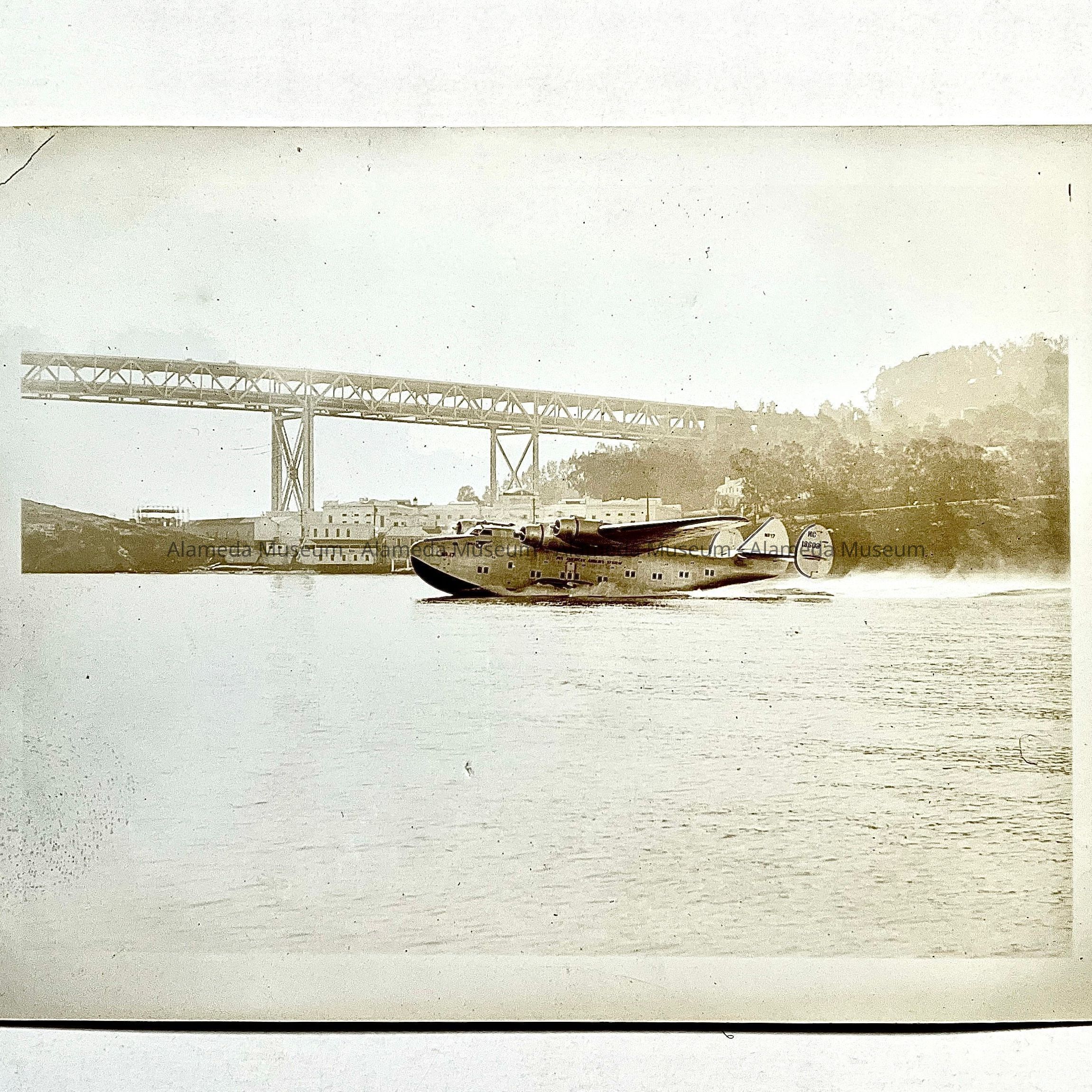 History of Object: China Clipper aircraft moving across the water of San Francisco Bay.