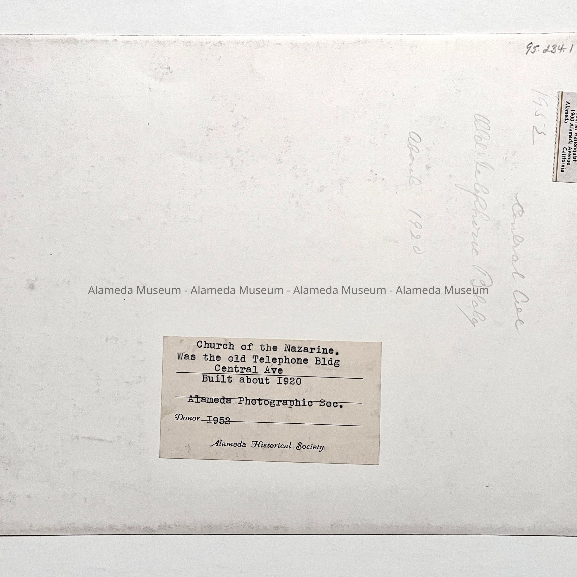History of Object: Church of the Nazarene structure on Central Avenue, formerly the old telephone building built in 1920.