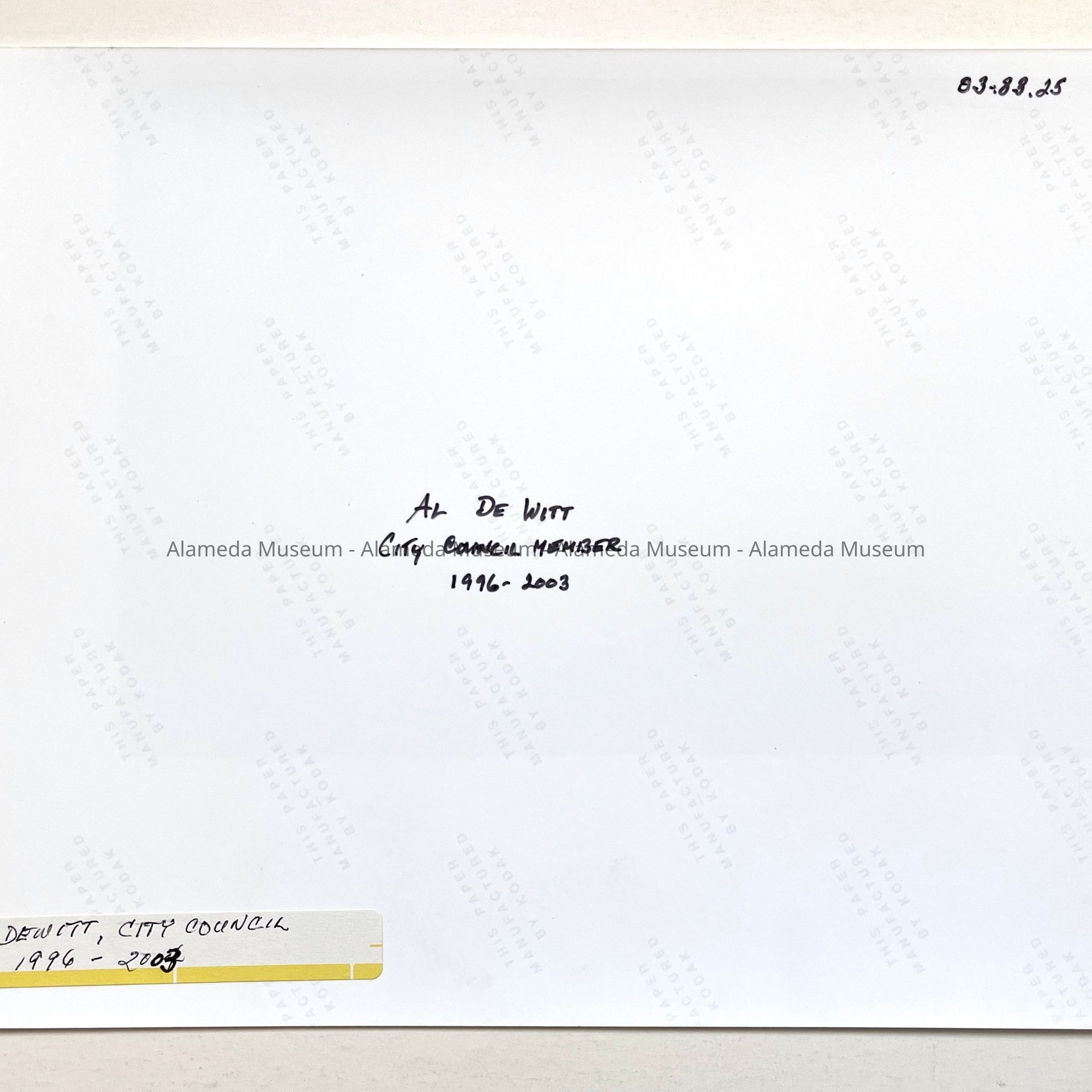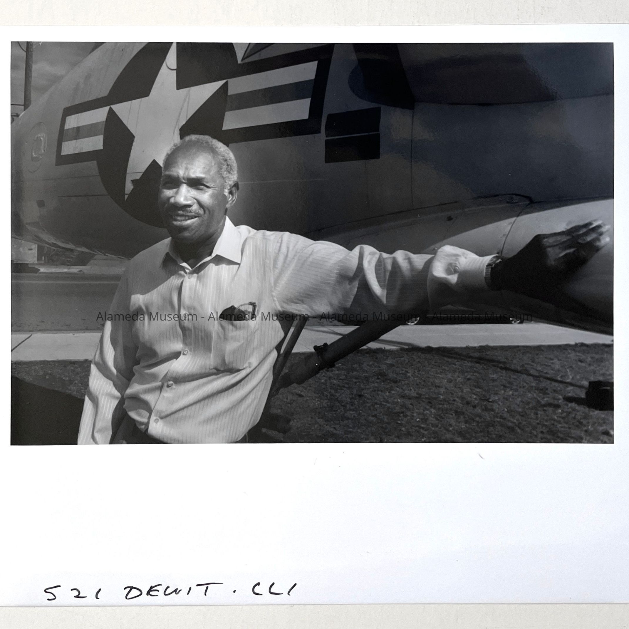 History of Object: Councilmember Al De Witt posed in front of a military airplane, possibly the one on display in front of Encinal High School.
