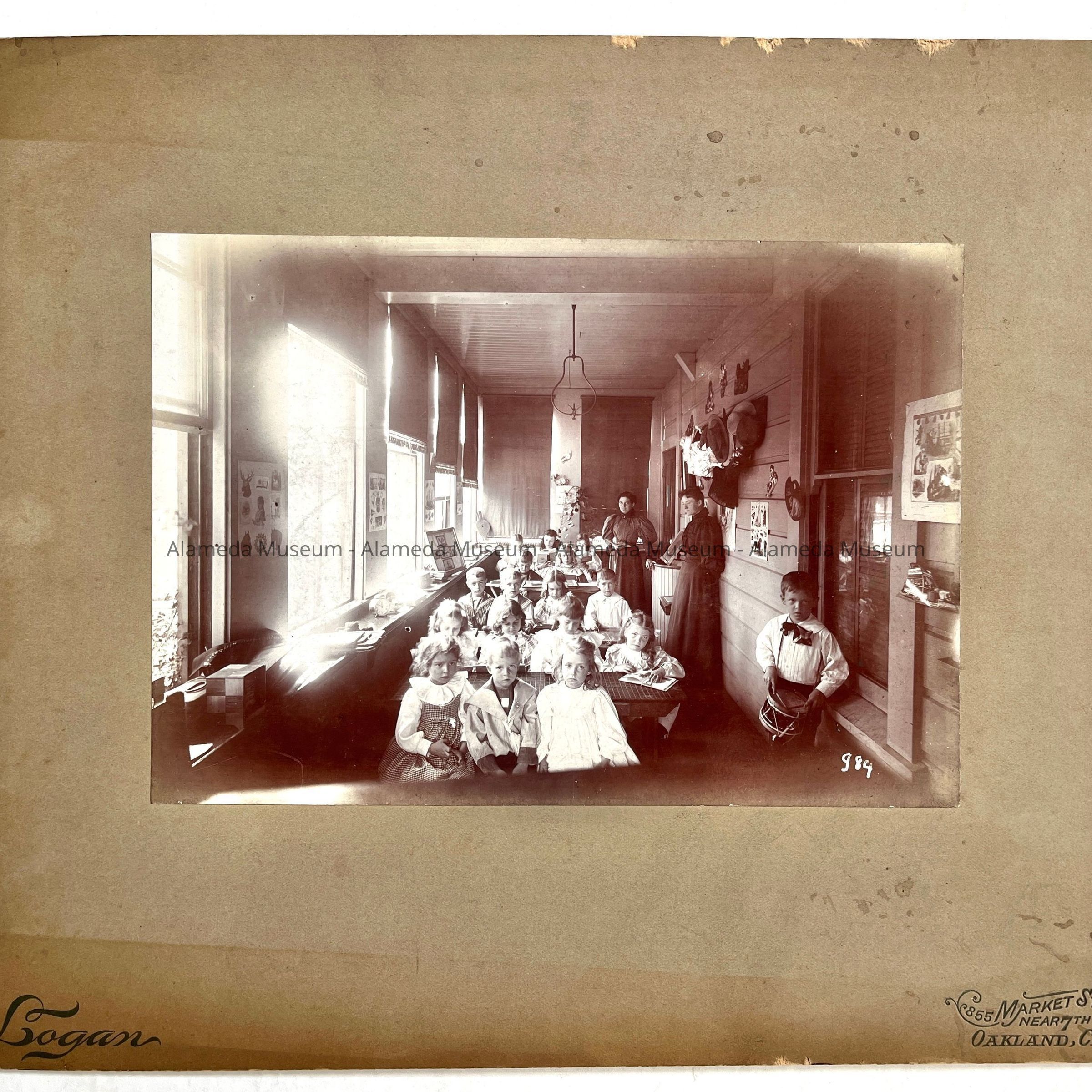Description: Sepia tinted photo on professional mounting signed "Logan, 855 Market St, near 7th, Oakland, Cal.”