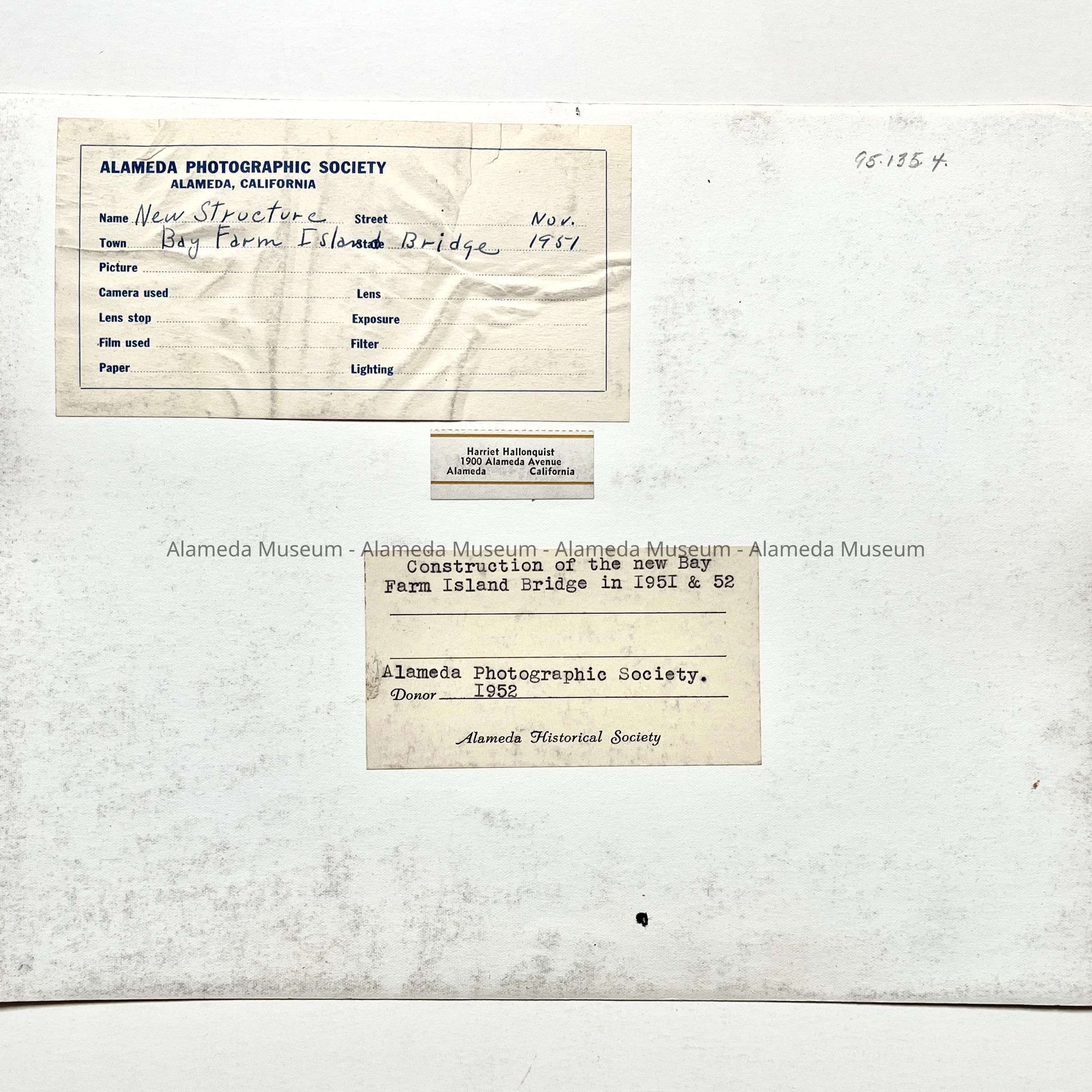 Photo Construction new Bay Farm Island Bridge, c. 1951/1952Entry/Object ID