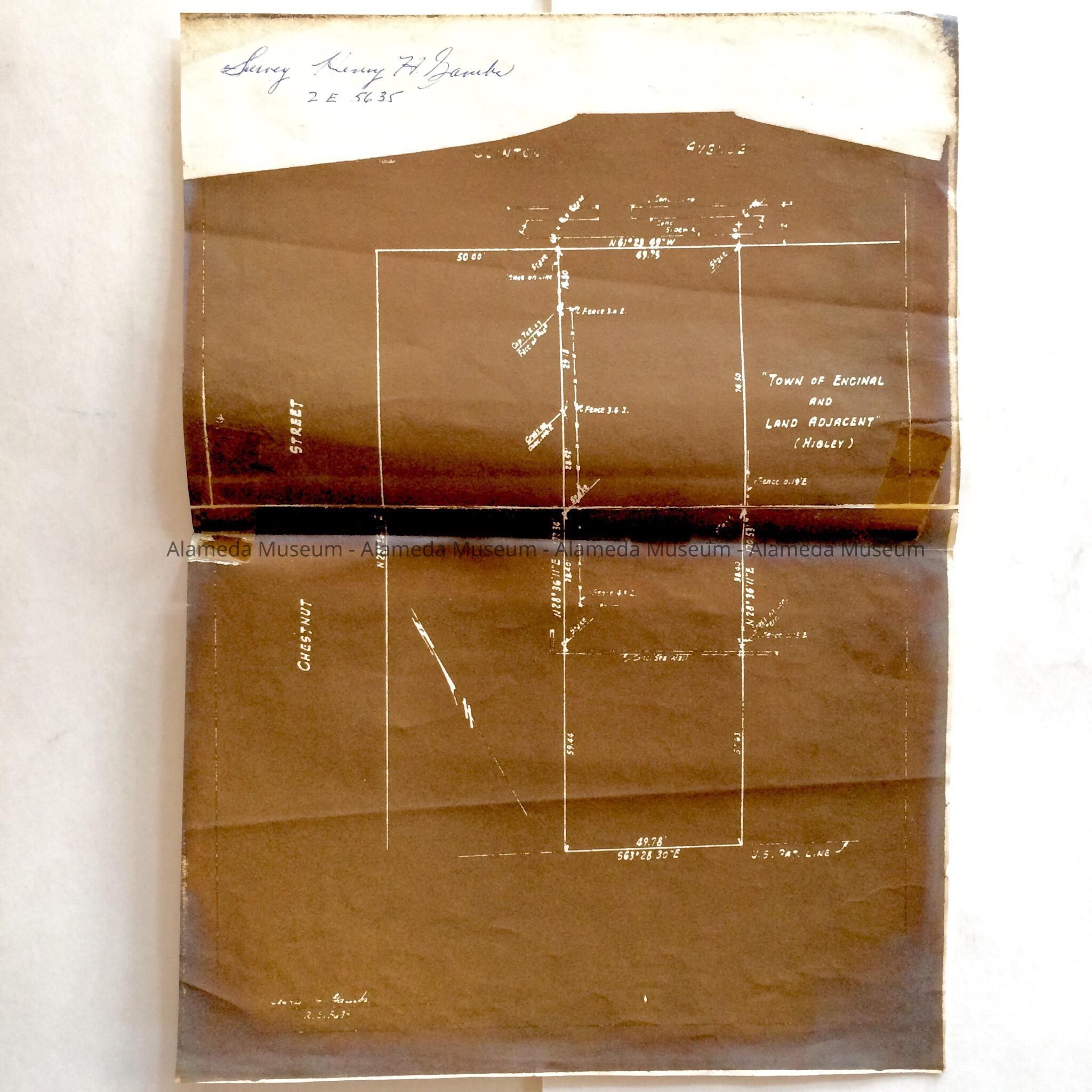 PHOTOSTATIC COPY OF A PLOT MAP, GIVING PROPERTY IN THE TOWN OF ENCINAL, AND LANDS ADJACENT --- PRESENTLY KNOWN AS 2008 CLINTON AVENUE, ALAMEDA, CALIFORNIA. THE PLOT MAP GIVES THE DIMENSIONS (WIDTH AND DEPTH) OF THIS INDIVIDUAL PIECE OF PROPERTY.