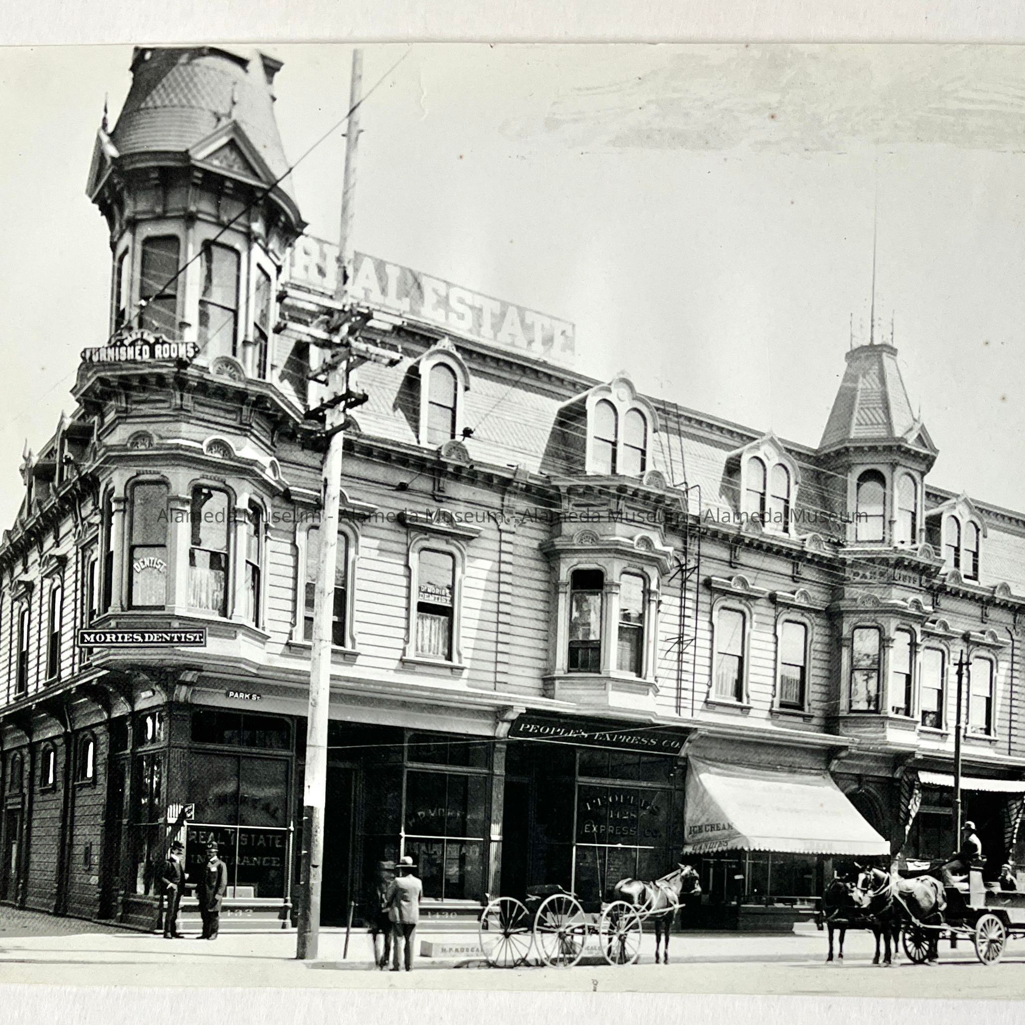 History of Object: Corner of Lincoln Avenue at Park Street featuring an ornate business building.