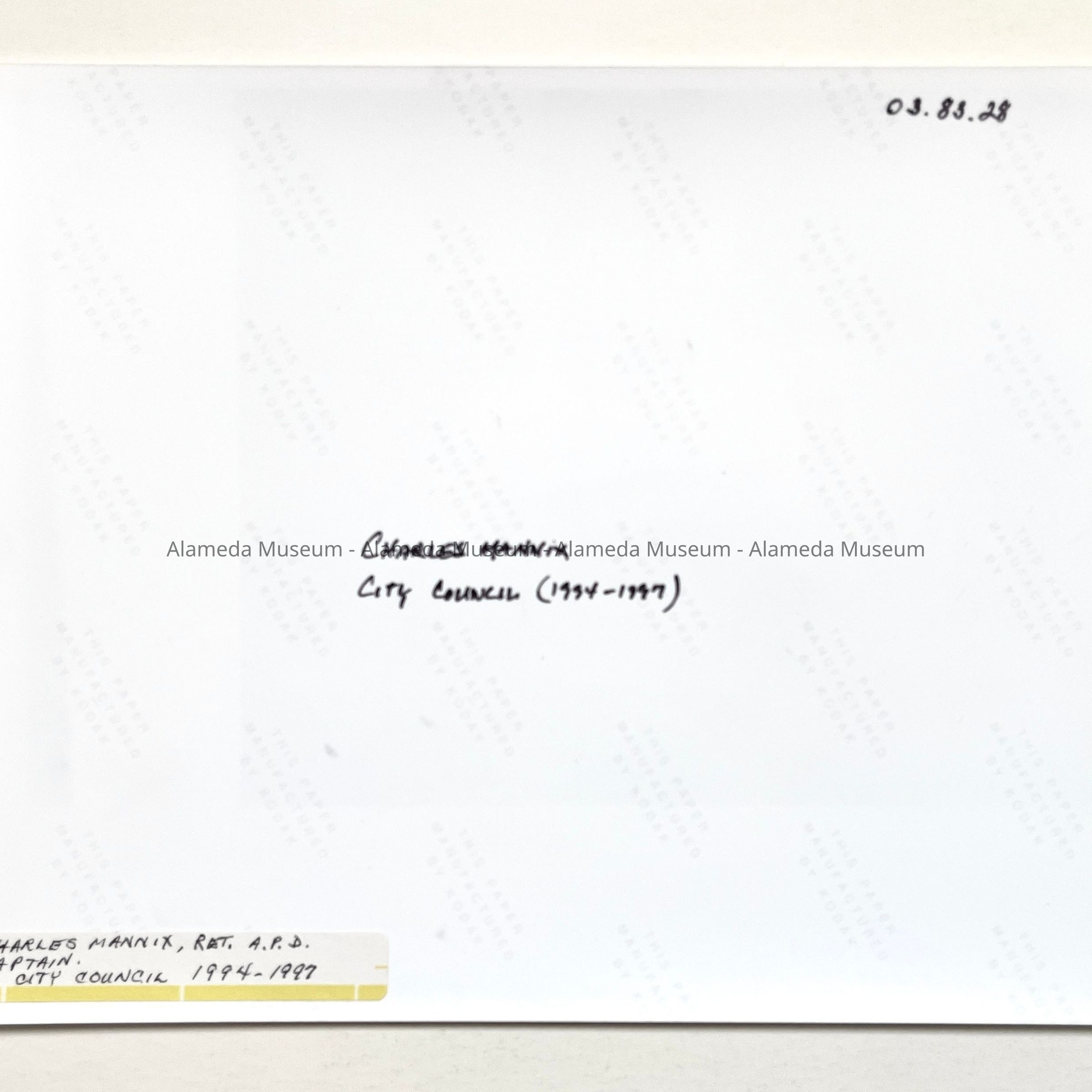 History of Object: Councilmember Charles Mannix (1994-1997), a retired Alameda Police Department captain.