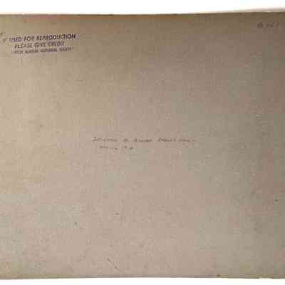 Black/white photo mounted on dark gray paperboard. Descriptive label attached to lower margin of mount, covering edge of the image. Photographer unknown.