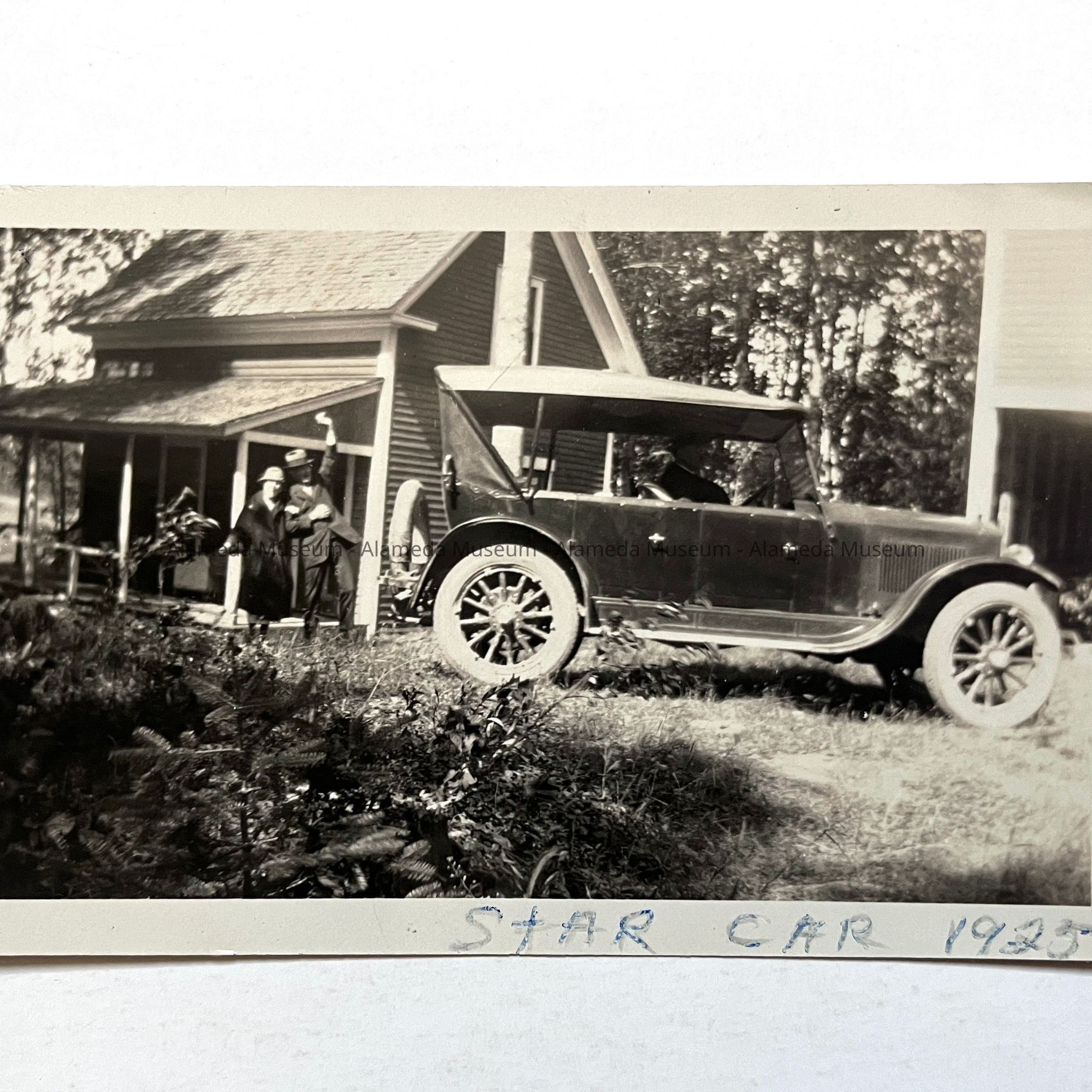 Photo Dr. and Mrs. Stephens behind a car in front of a country house, c. 1925Entry/Object ID