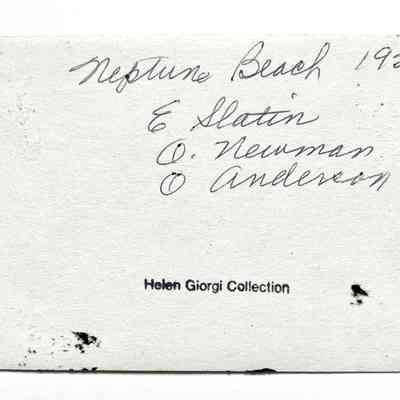 Photo E. Slatin, O. Newman, O. Anderson at Neptune Beach, 1920Entry/Object ID