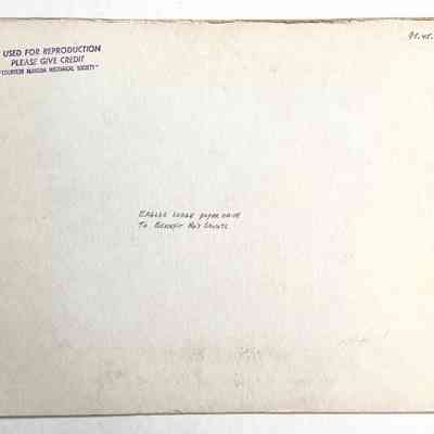 Black/white photo mounted on gray paperboard. Descriptive label affixed to lower front margin of mounting, below the image.