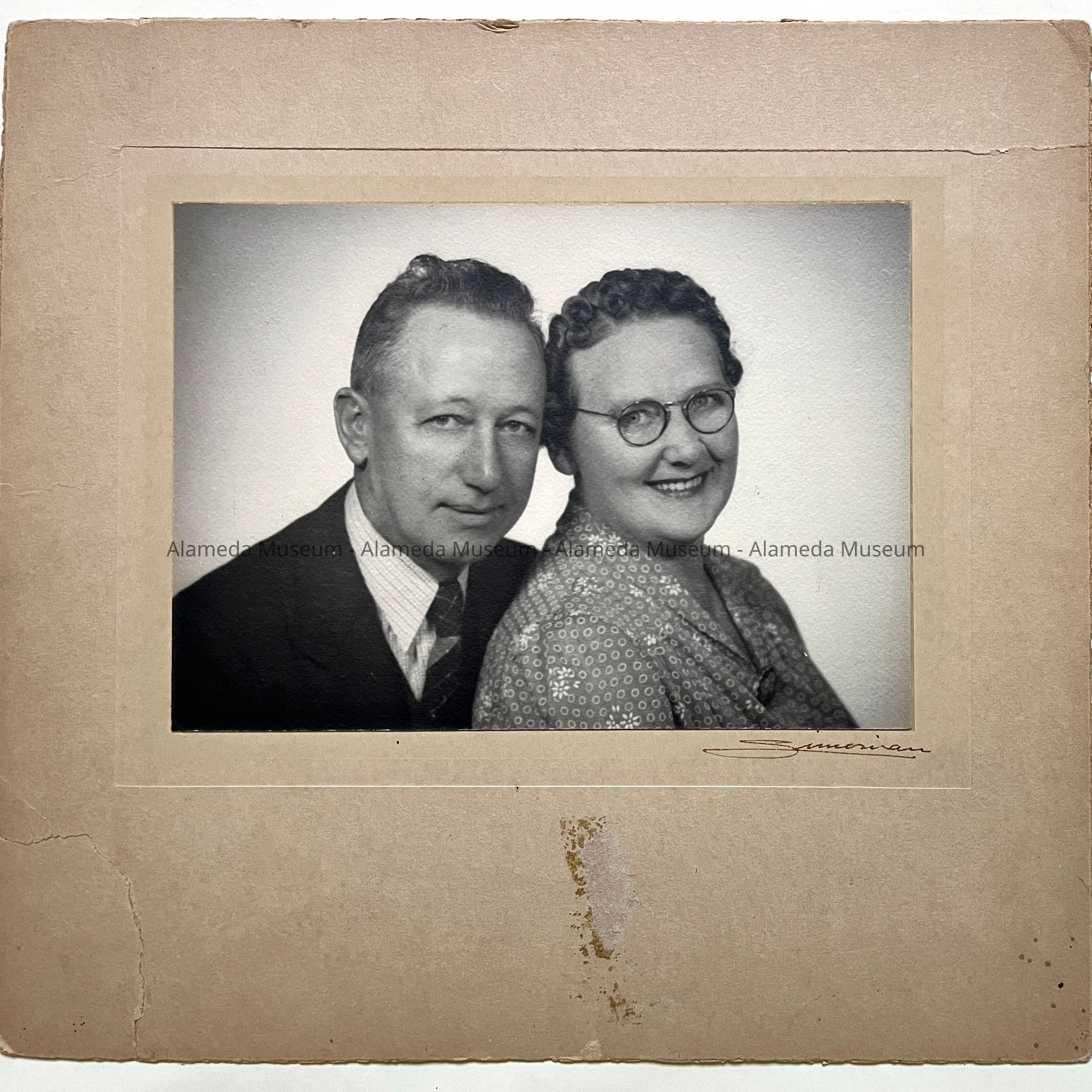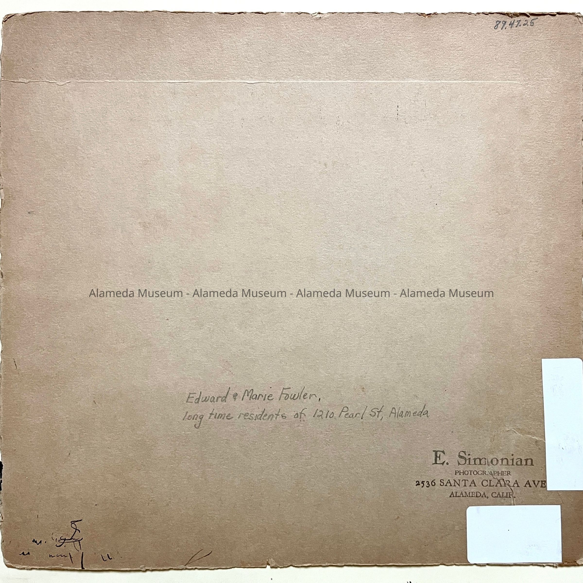 Photo of Edward & Marie Fowler, longtime residents of 1210 Pearl St, Alameda. They were the parents of Ed. Wm. Fowler.