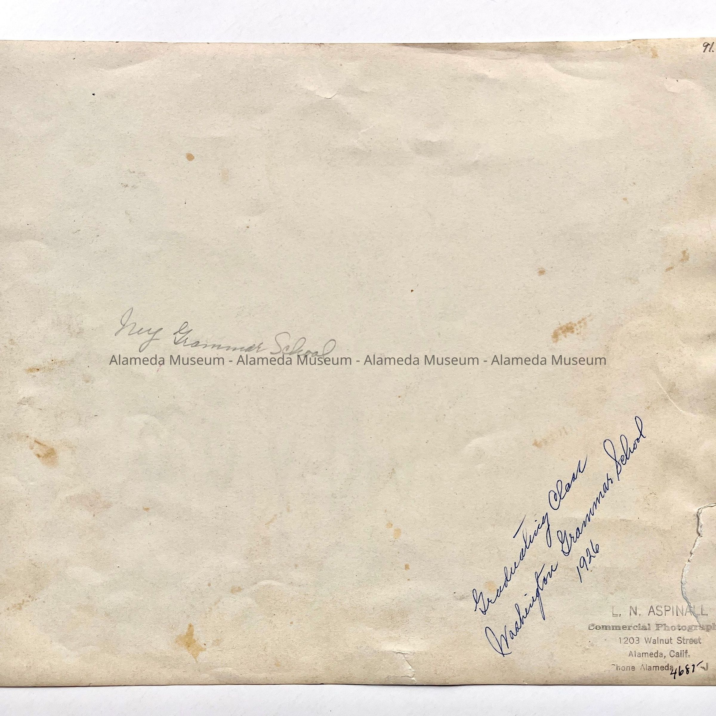 Photo Eight grade graduating class, Washington School, 1926Entry/Object ID