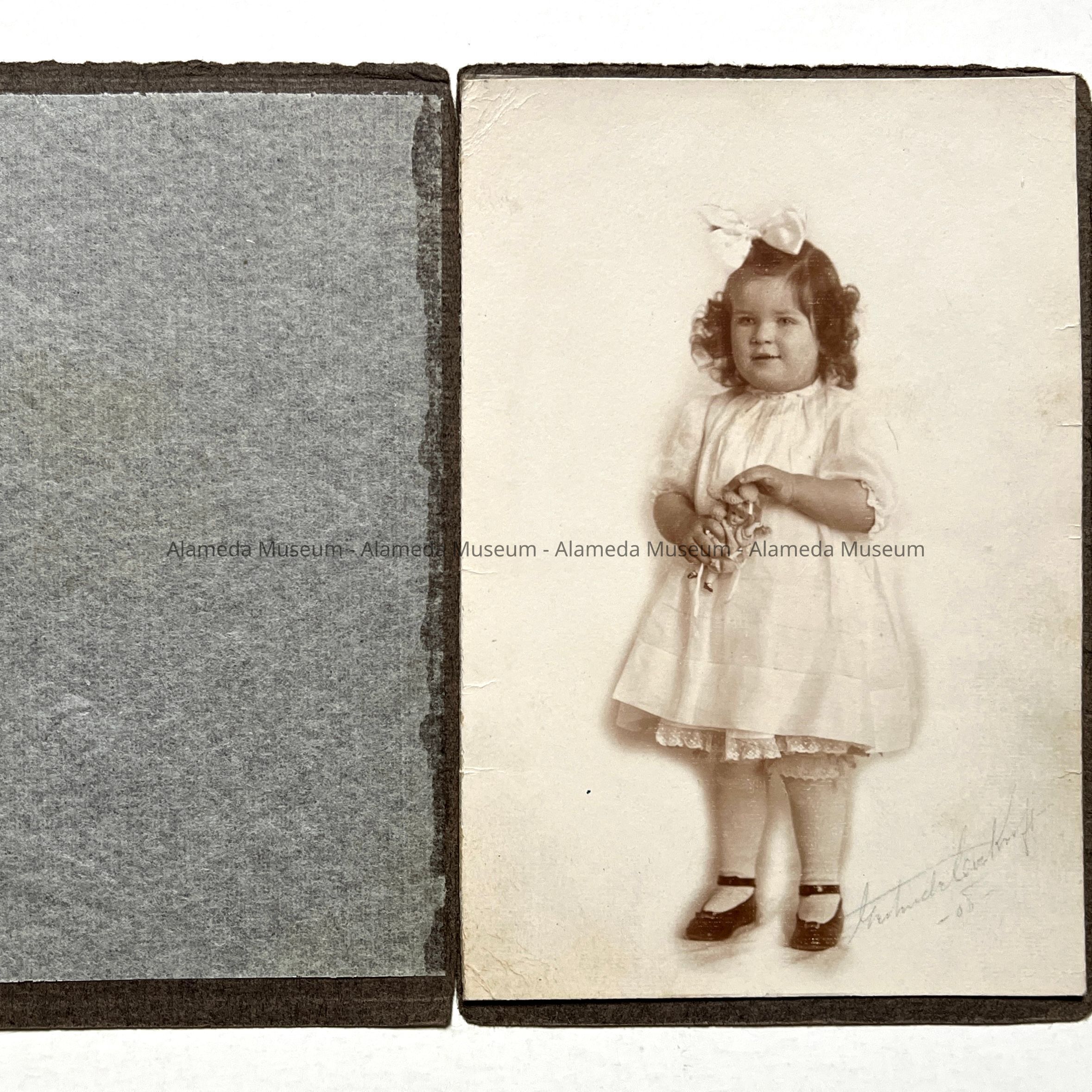 History of Object: Photo taken by Gertrude Cockroft, Alameda photographer, who had her studio on Alameda Avenue between Union & Lafayette for many years. The subject of the photo is Eleanor D. Clark, age 2 years and 3 months, 1908,