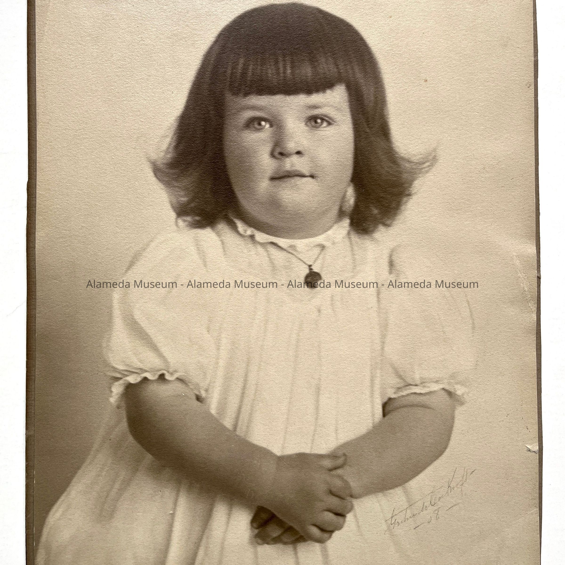 History of object: Photo of Eleanor D. Clark, daughter of Herbert D. & Emma Adell Clark, born 1906. The photograph was taken by Gertrude Cockroft, then a popular portrait photographer, with studios on Alameda Avenue. Ms. Clark became the Executive Director Alameda Branch, American Red Cross, and served in that capacity for many years.