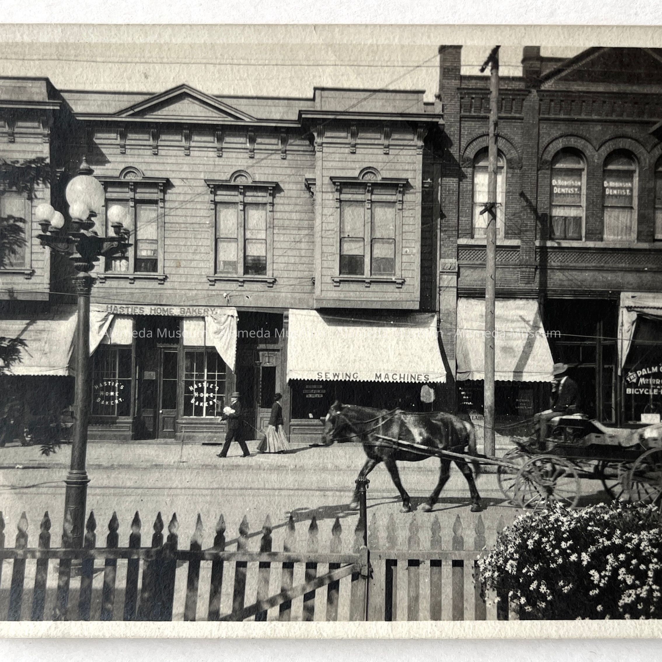 History of Object: Photo of the original exterior of 1318 Park Street, Alameda (Victorian style commercial building).