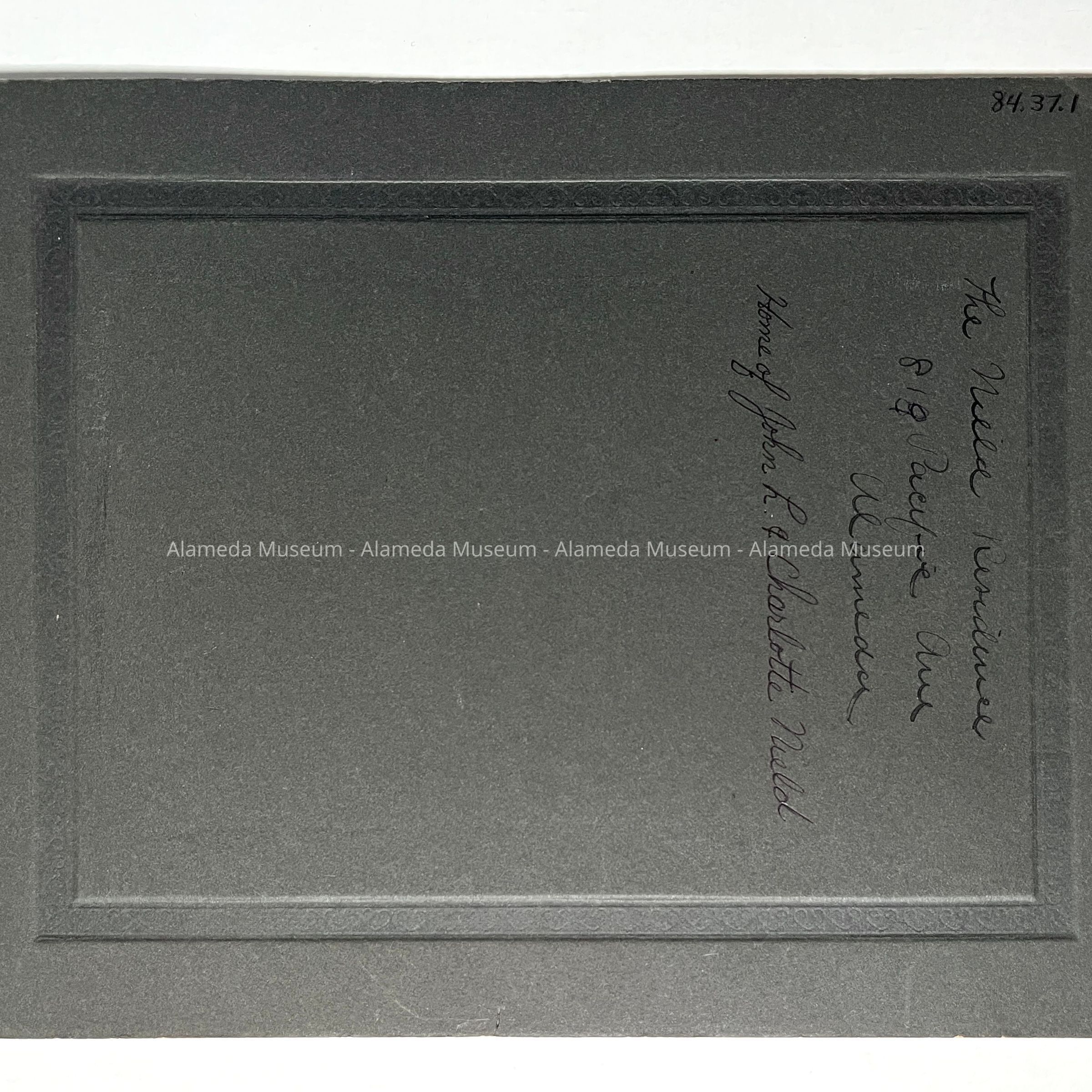 History of Object: Exterior photo, 818 Pacific Avenue, Alameda, Cal., the home of John L. & Charlotte Nield (grandparents of the donor). The Nield family came to Alameda about 1891. Mr. Nield was a superintendent of an iron works.