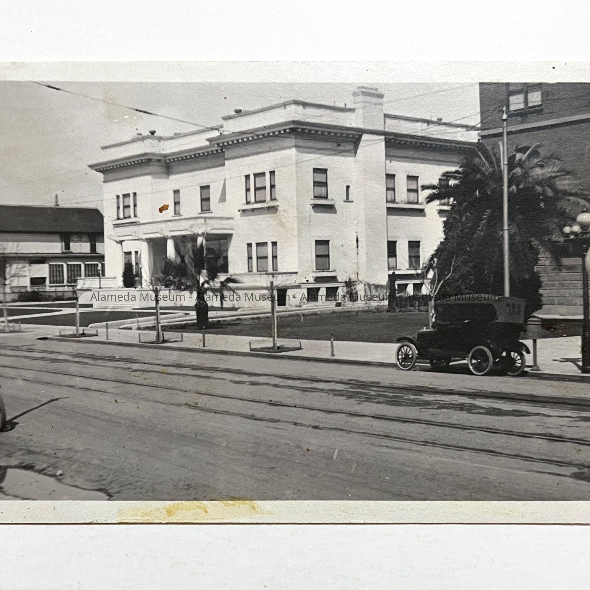 History of Object: Exterior view of the Alameda Elks Club taken from in front of the Alameda Public Library.