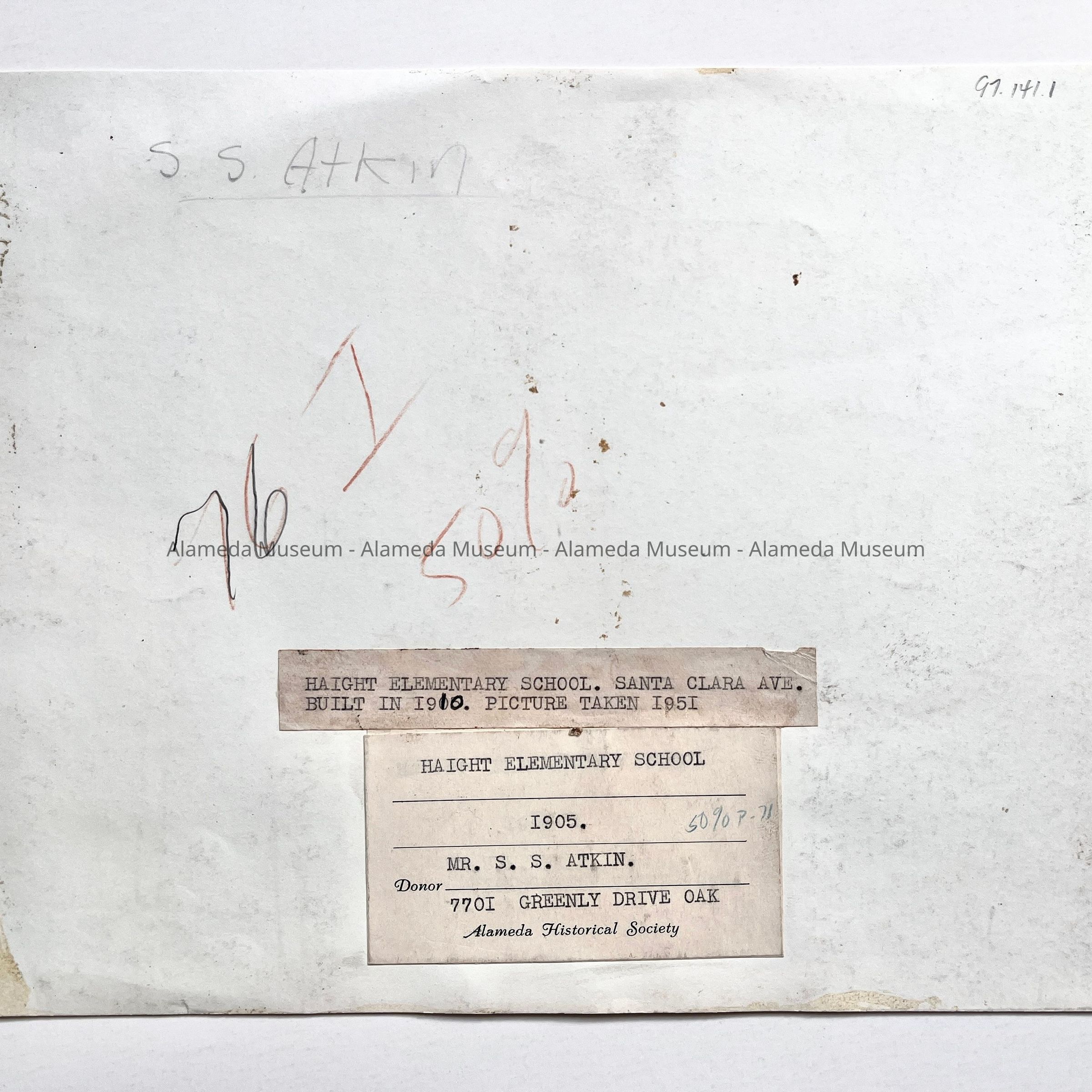 Photo exterior Haight Elementary School on Santa Clara Ave, 1951Entry/Object ID