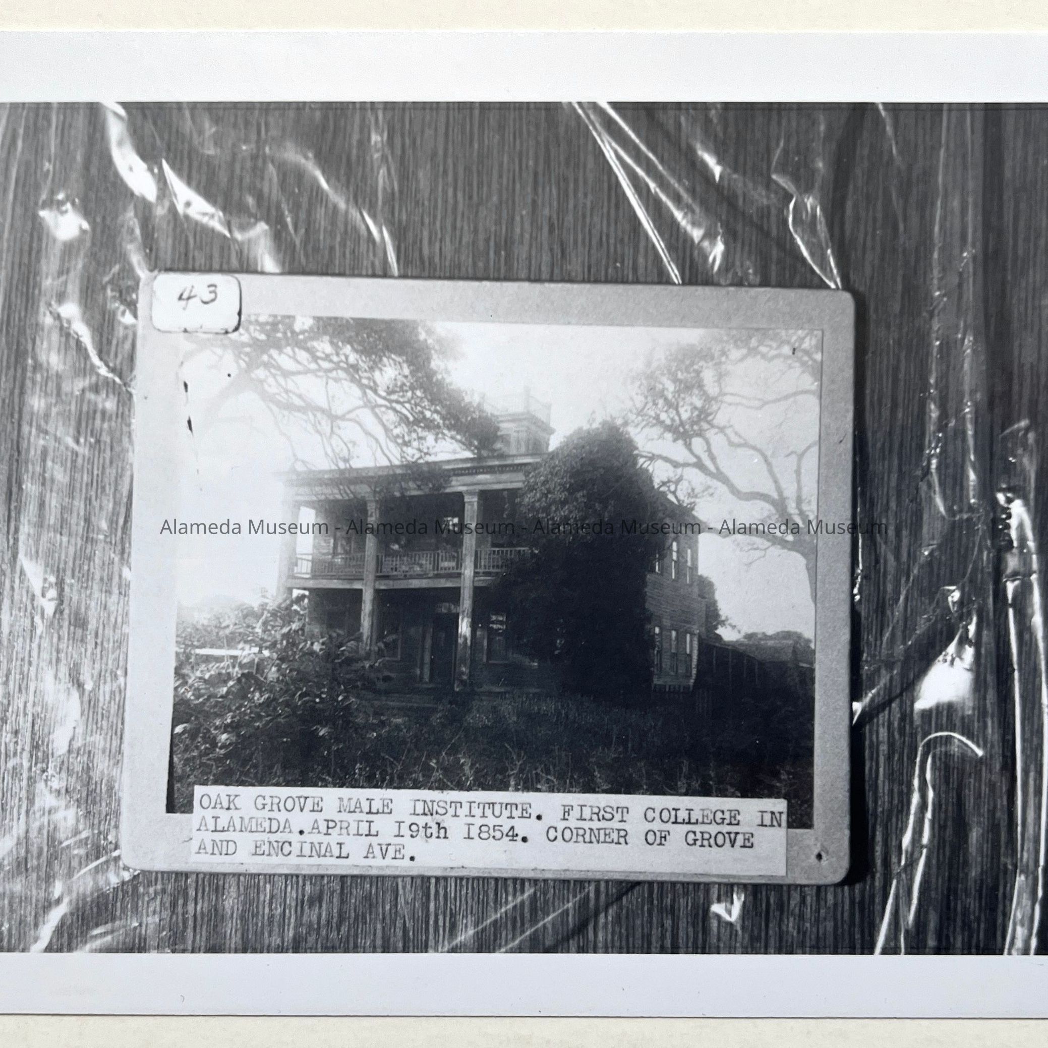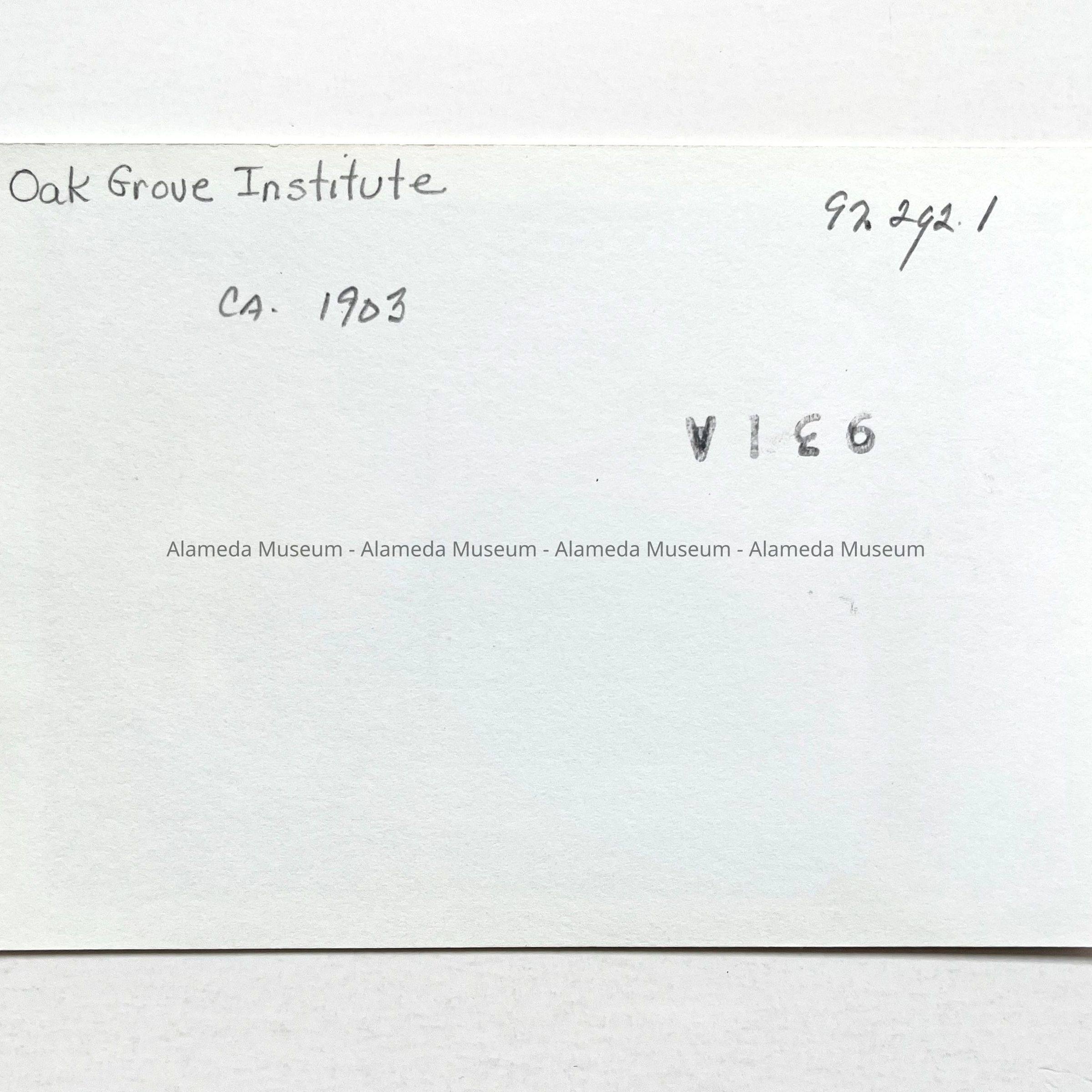 History of Object: Exterior view of Oak Grove Male Institute located at the corner of Grove St. and Encinal Avenue. Ca. 1903.