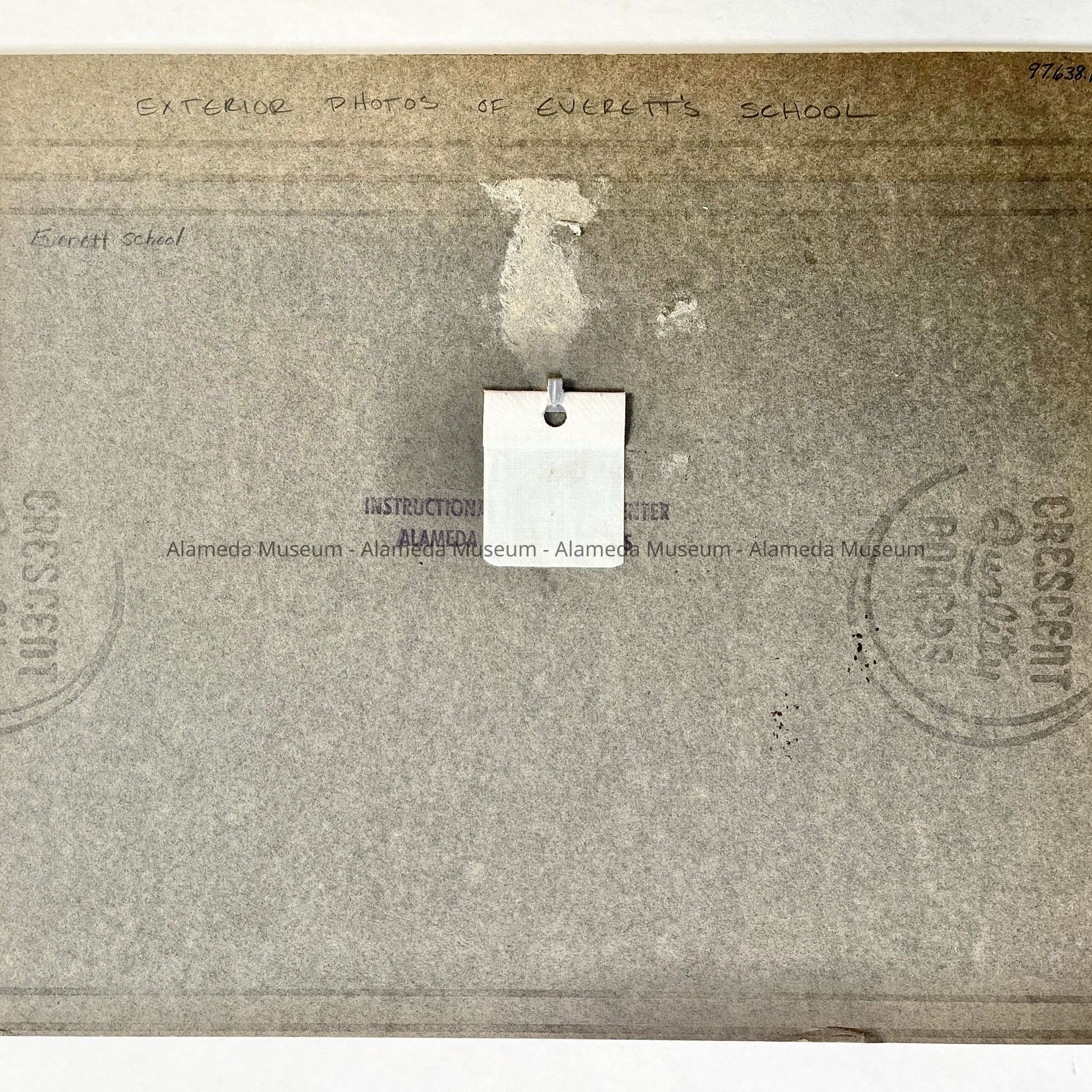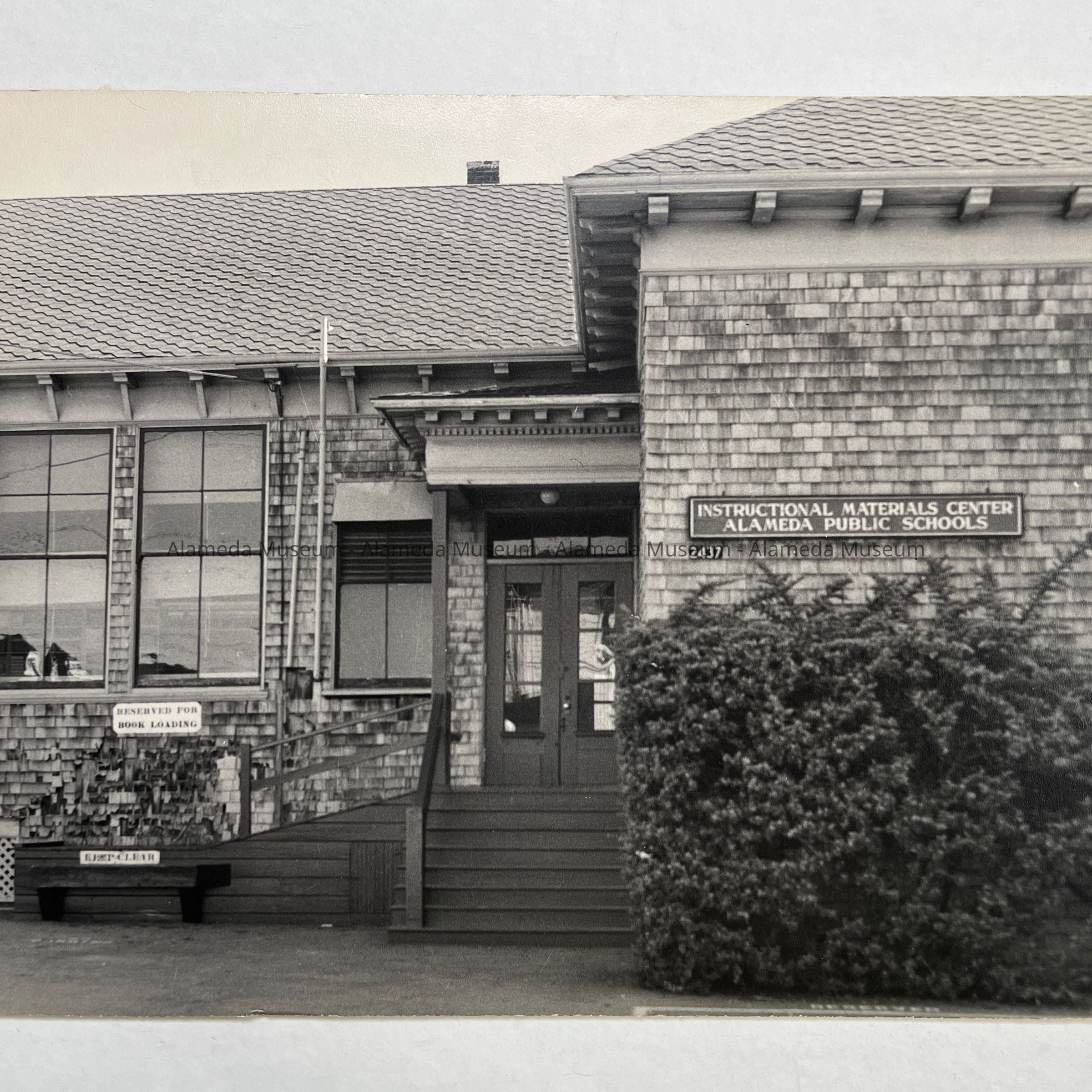 PHOTOGRAPH OF THE EXTERIOR OF THE OLD EVERETT SCHOOL, 2437 EAGLE AVENUE, ALAMEDA, CA. THIS EARLY BUILDING WAS EVENTUALLY USED AS THE INSTRUCTIONAL MATERIALS CENTER FOR ALAMEDA PUBLIC SCHOOLS.