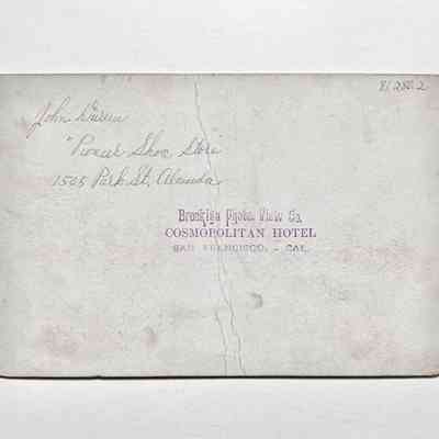 Description: Sepia tinted photograph, off white mounting, photographer is "Brooklyn Photo View Co. Cosmopolitan Hotel, San Francisco, Cal."