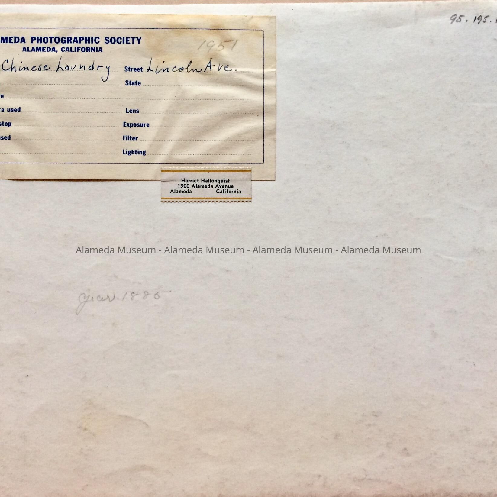 Photo exterior Sam Wo Laundry, by Harriet Hollenquist, 1951Entry/Object ID