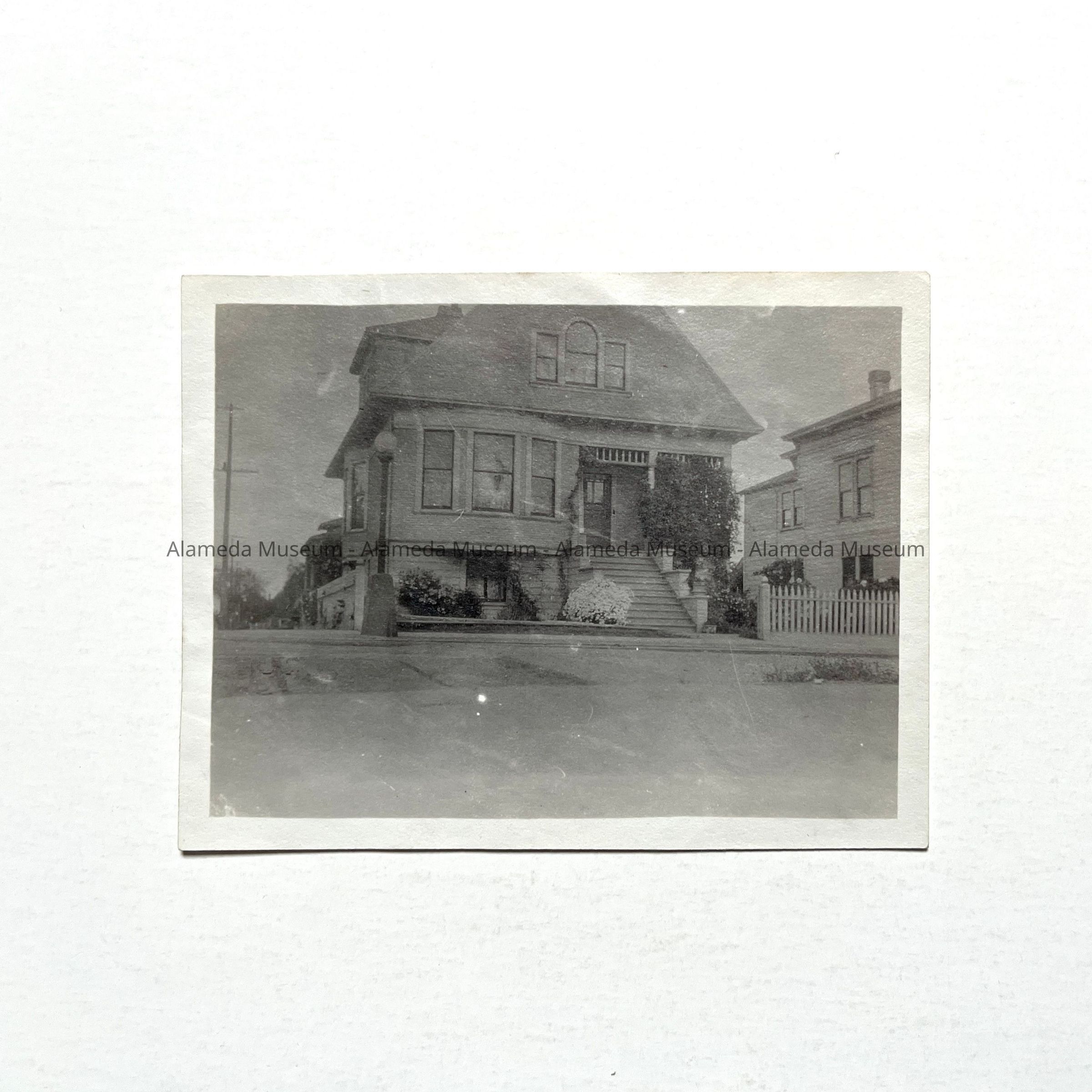 History of Object: Exterior view of a residence located at 1437 9th Street, Alameda. It was erected in 1902; Doss & Cunningham were the builders and architects. The original owner was Ida Siebs.