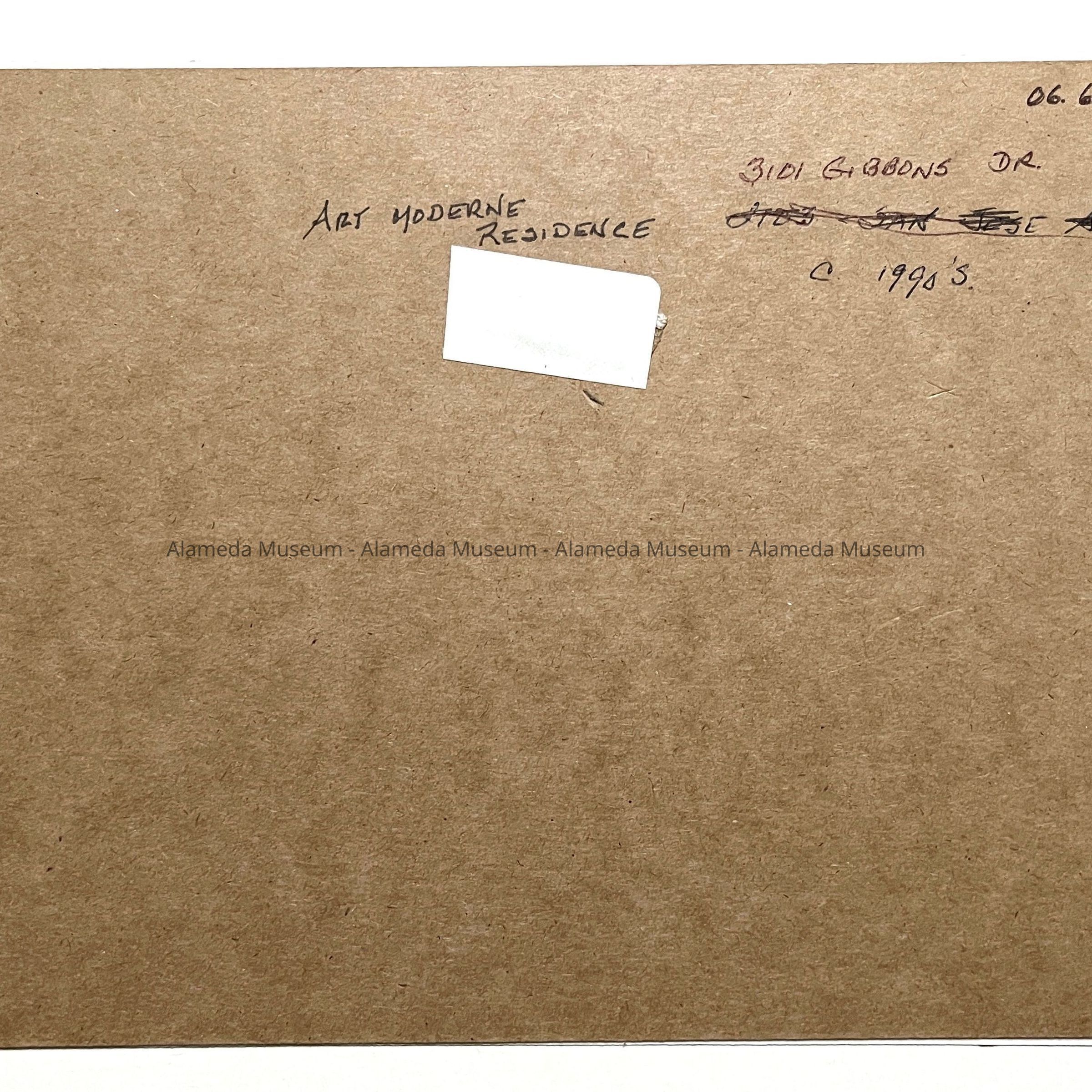 History of Object: Exterior view of an art moderne residence at 3101 Gibbons Drive.