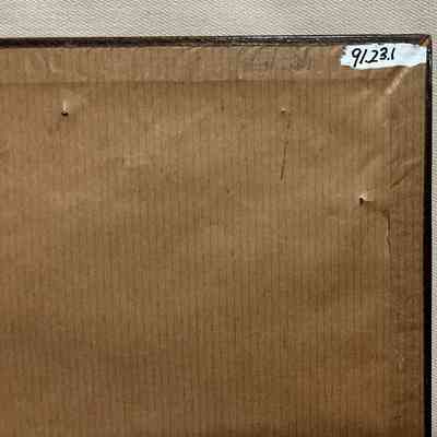 BLACK AND WHITE PHOTOGRAPH WITH OFF-WHITE COLORED MAT IN NATURAL WOOD FRAME.