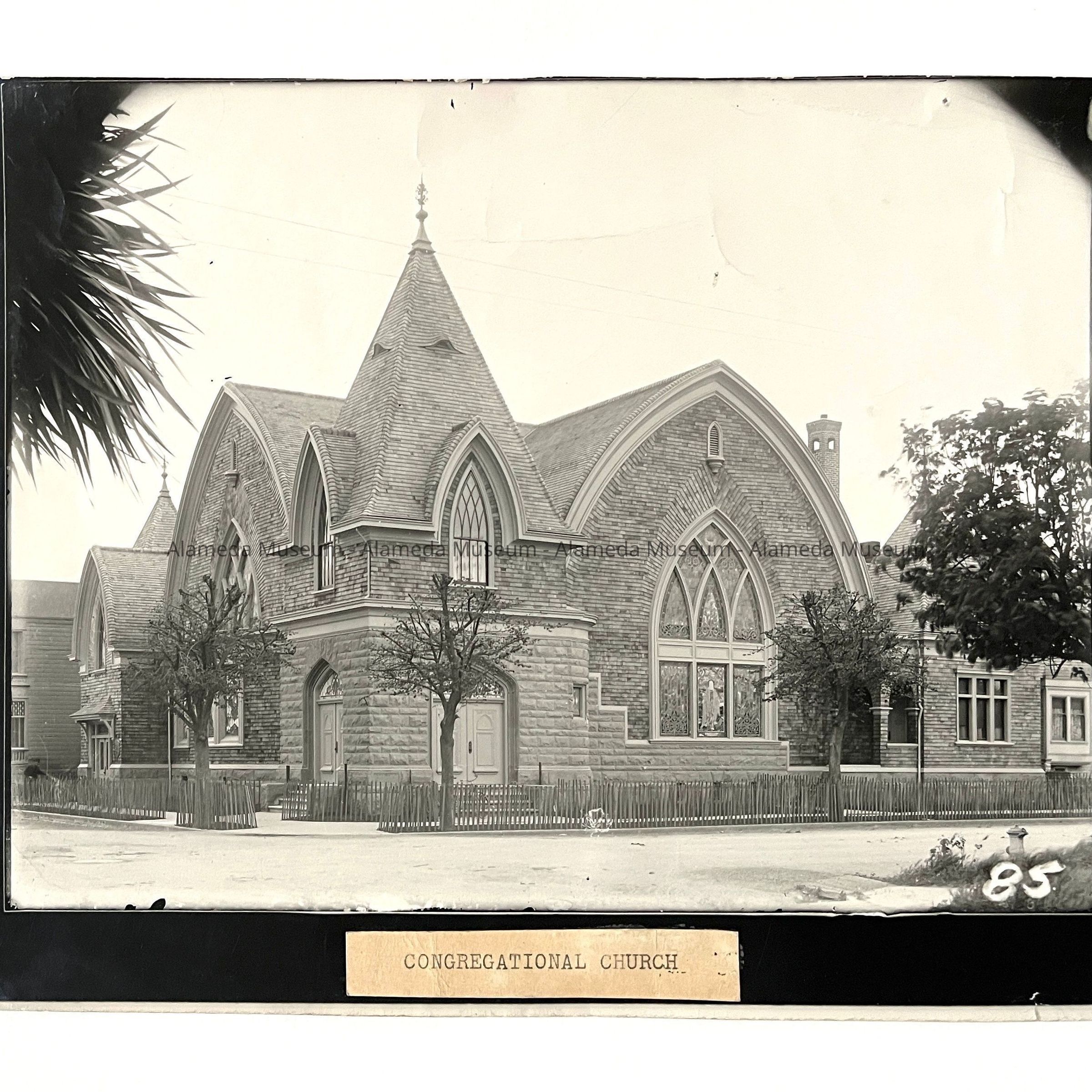 History of Object: View of First Congregational Church at Central Ave. and chestnut St. A picket fence surrounds the property.