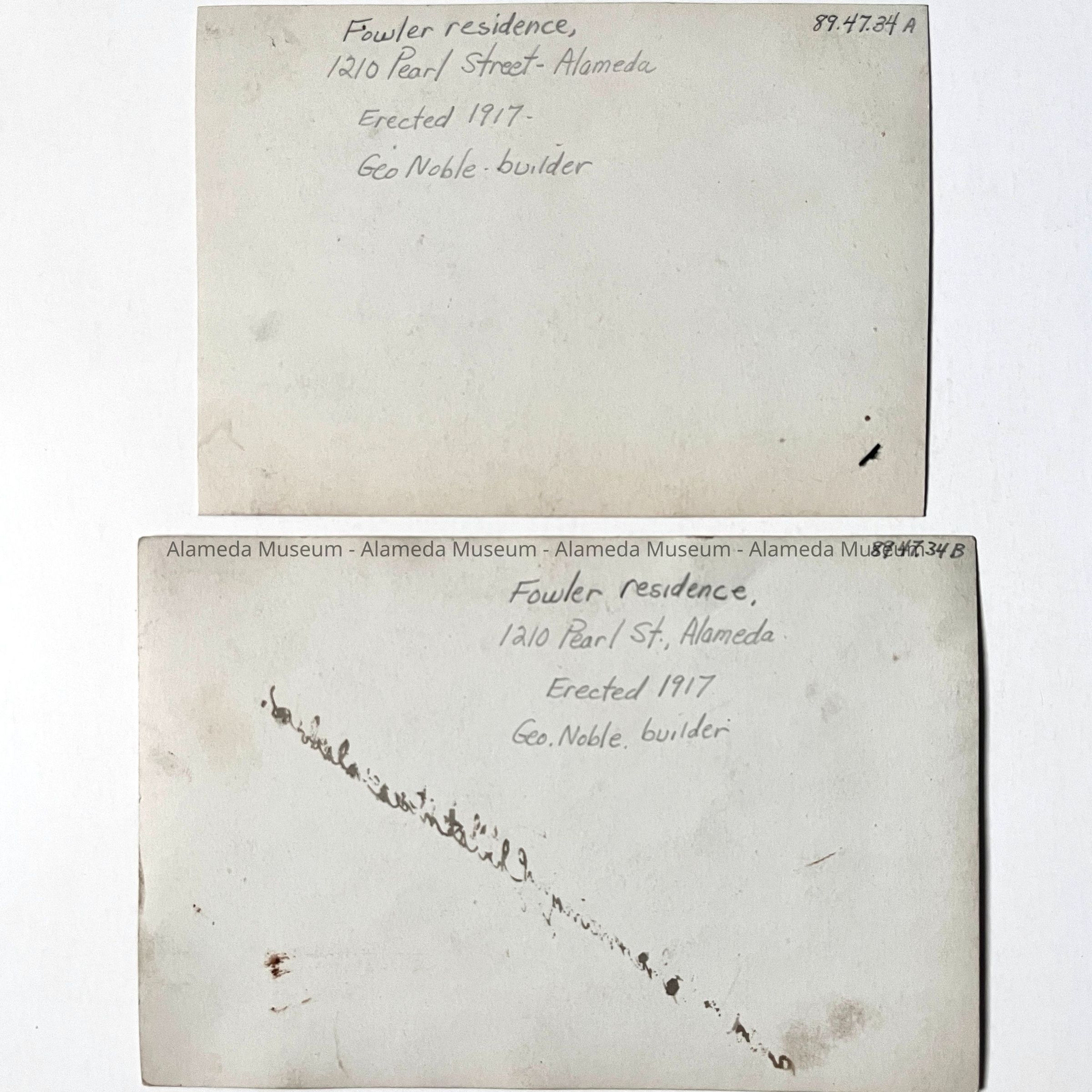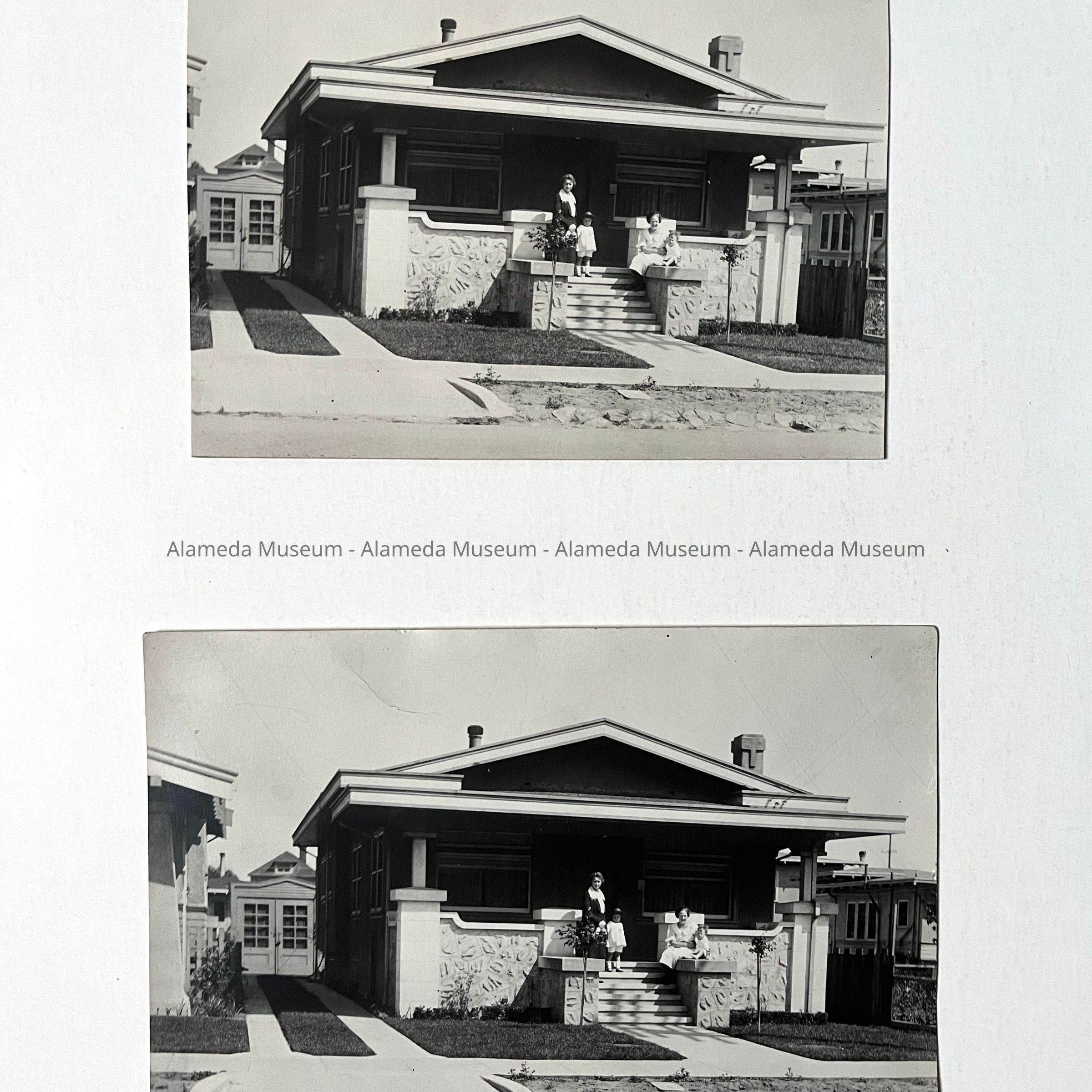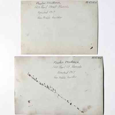 History of Object: Photo of the Fowler family residence, 1210 Pearl Street, Alameda. It was speculative built in 1917 by George Noble. A California style bungalow, it was purchased in 1919 or 1920 by Edward W. Fowler and occupied by him and his family until 1987.