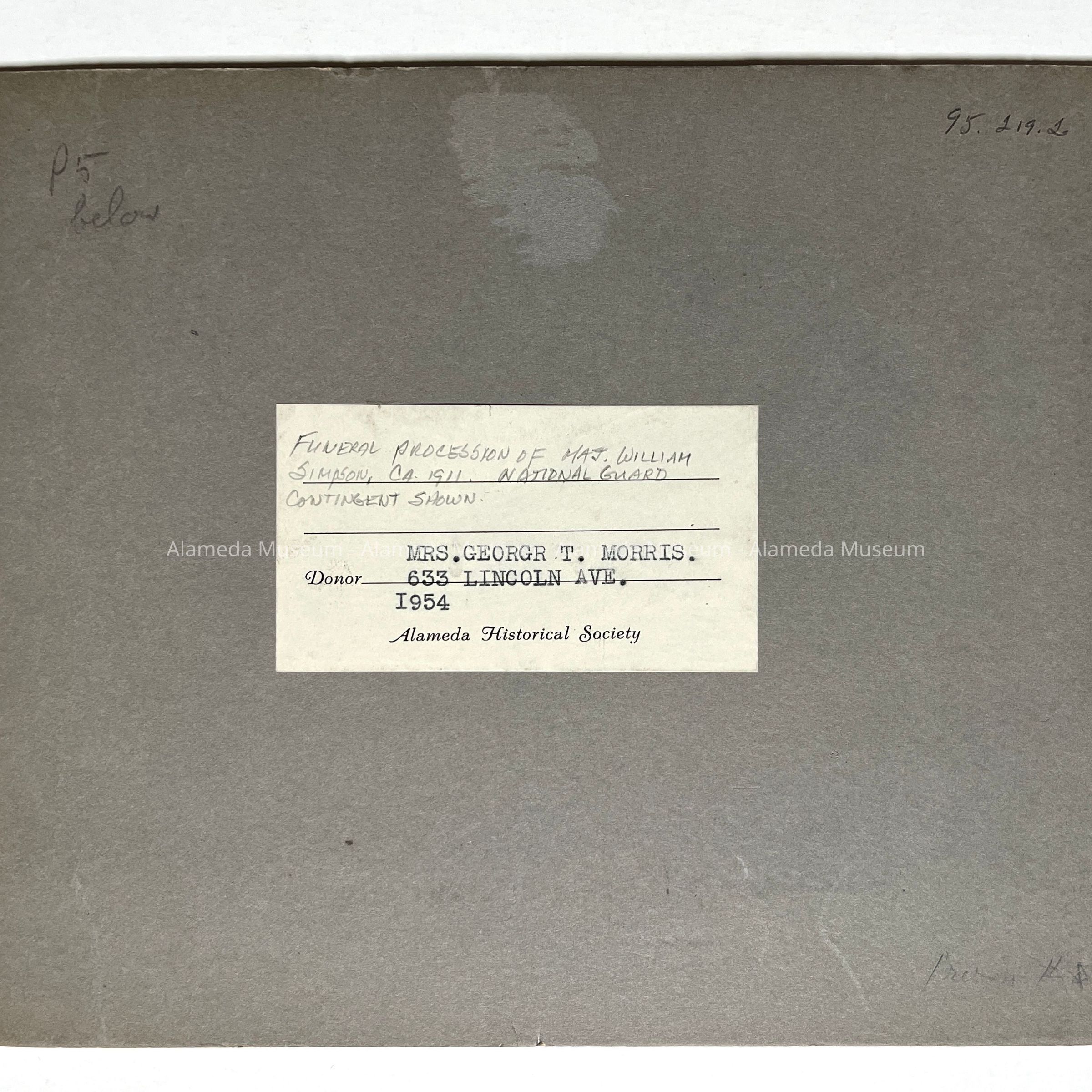 Acquired from: Mrs. George T. Morris (1954)