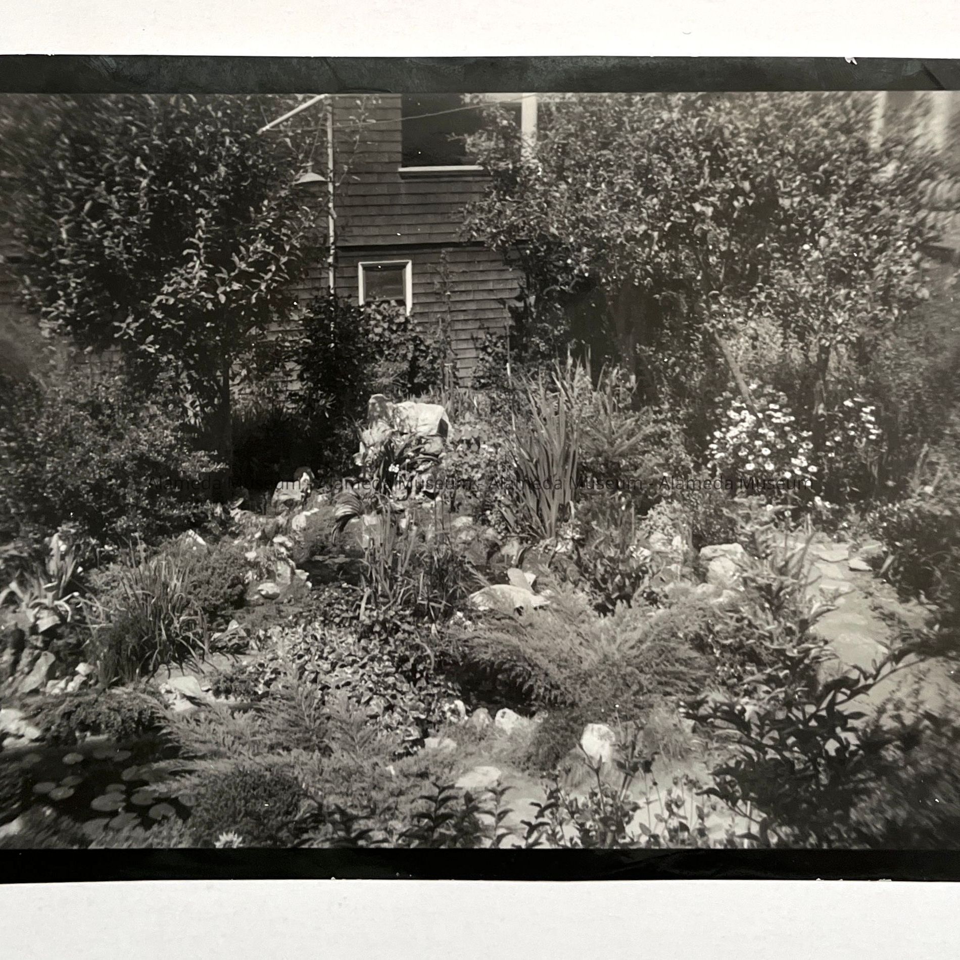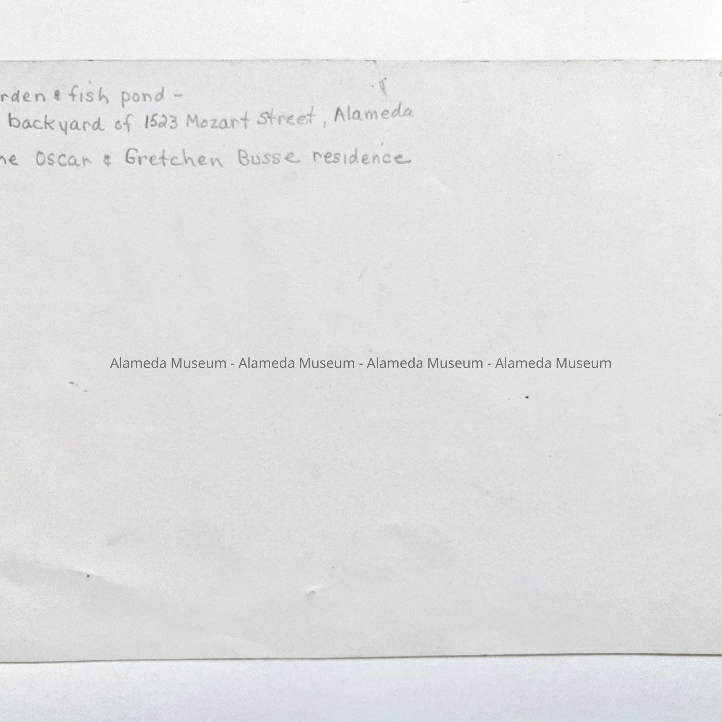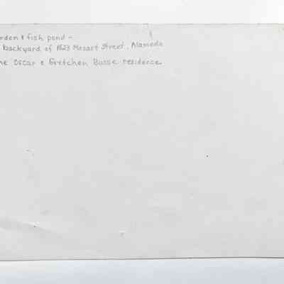 History of Object: Photo depicting the garden and fish pond of the Busse residence, 1523 Mozart Street, Alameda.