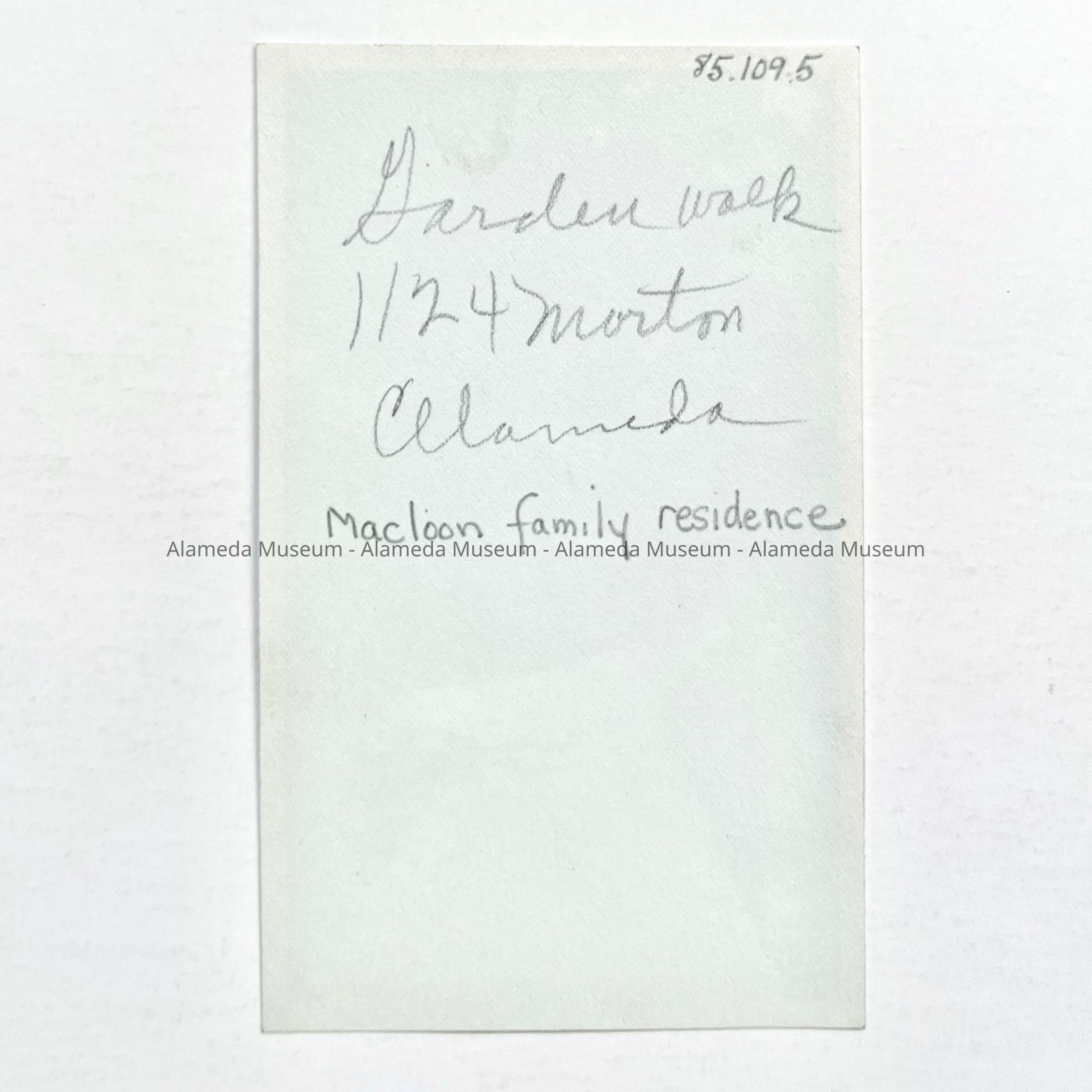 History of Object: Photo of the garden walk leading to the backyard of 1124 Morton Street, the Macloon family residence.