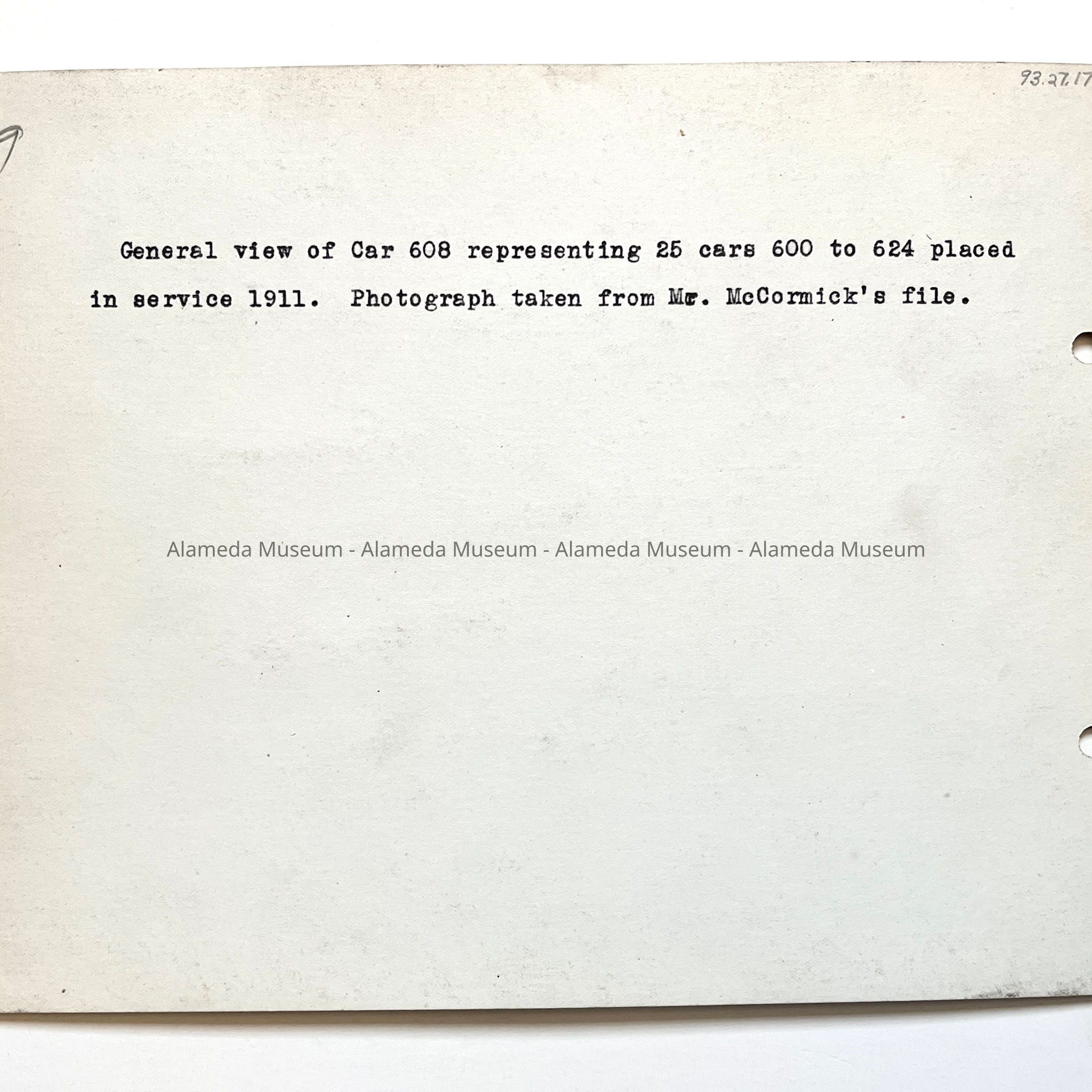 Photo General View of Southern Pacific Railroad Co. Car #608, 1920sEntry/Object ID