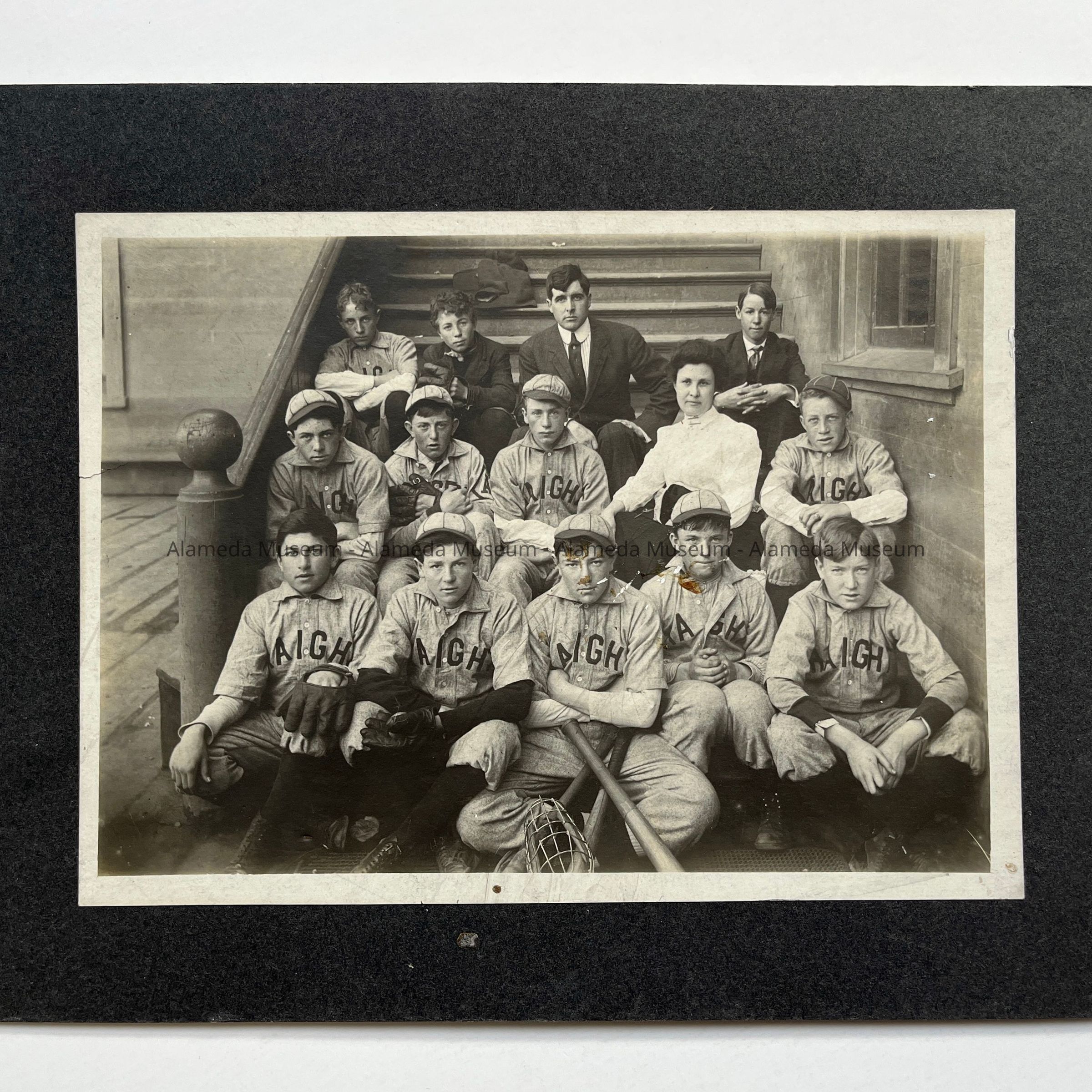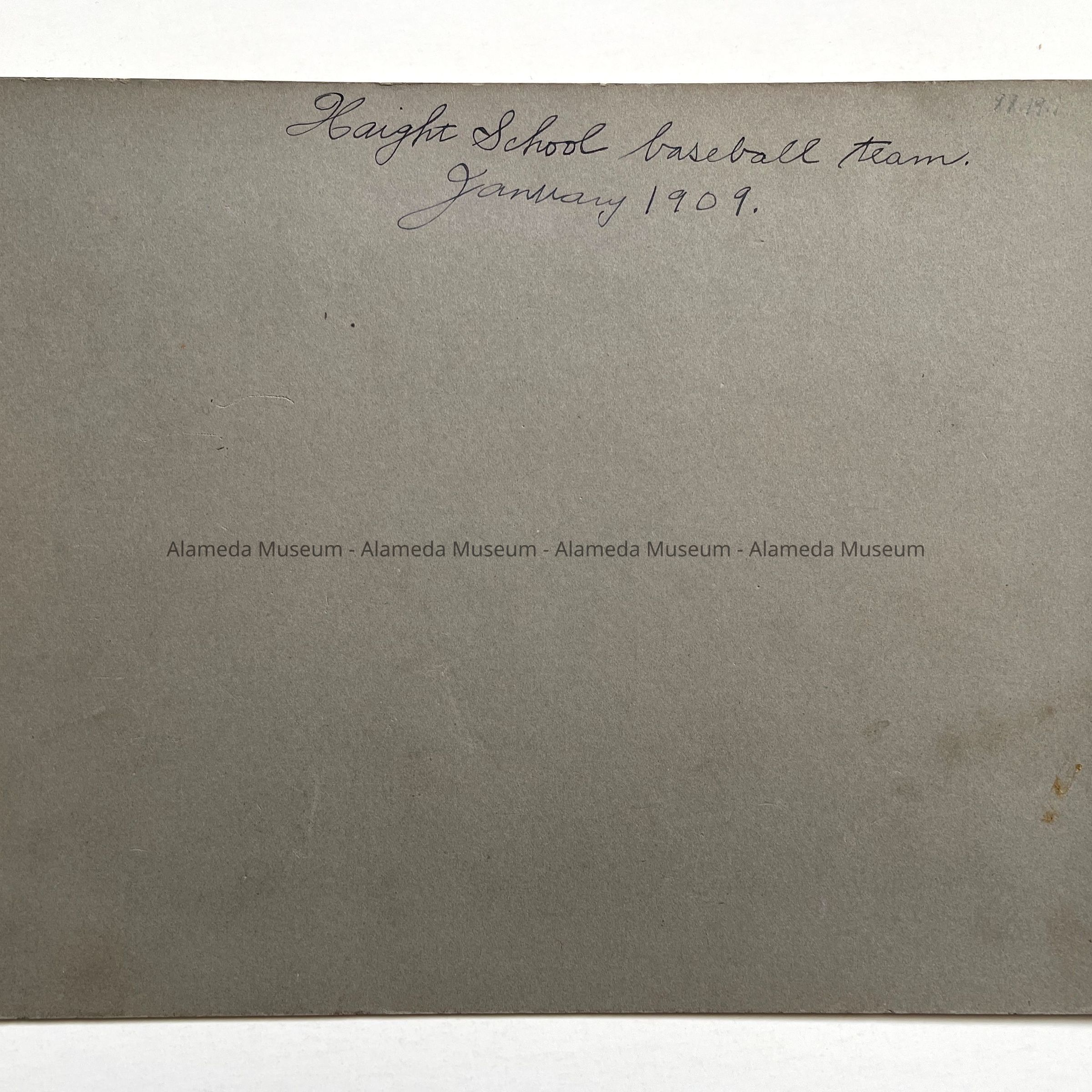 Photo of the Haight School baseball team, January, 1909. Participants unidentified.