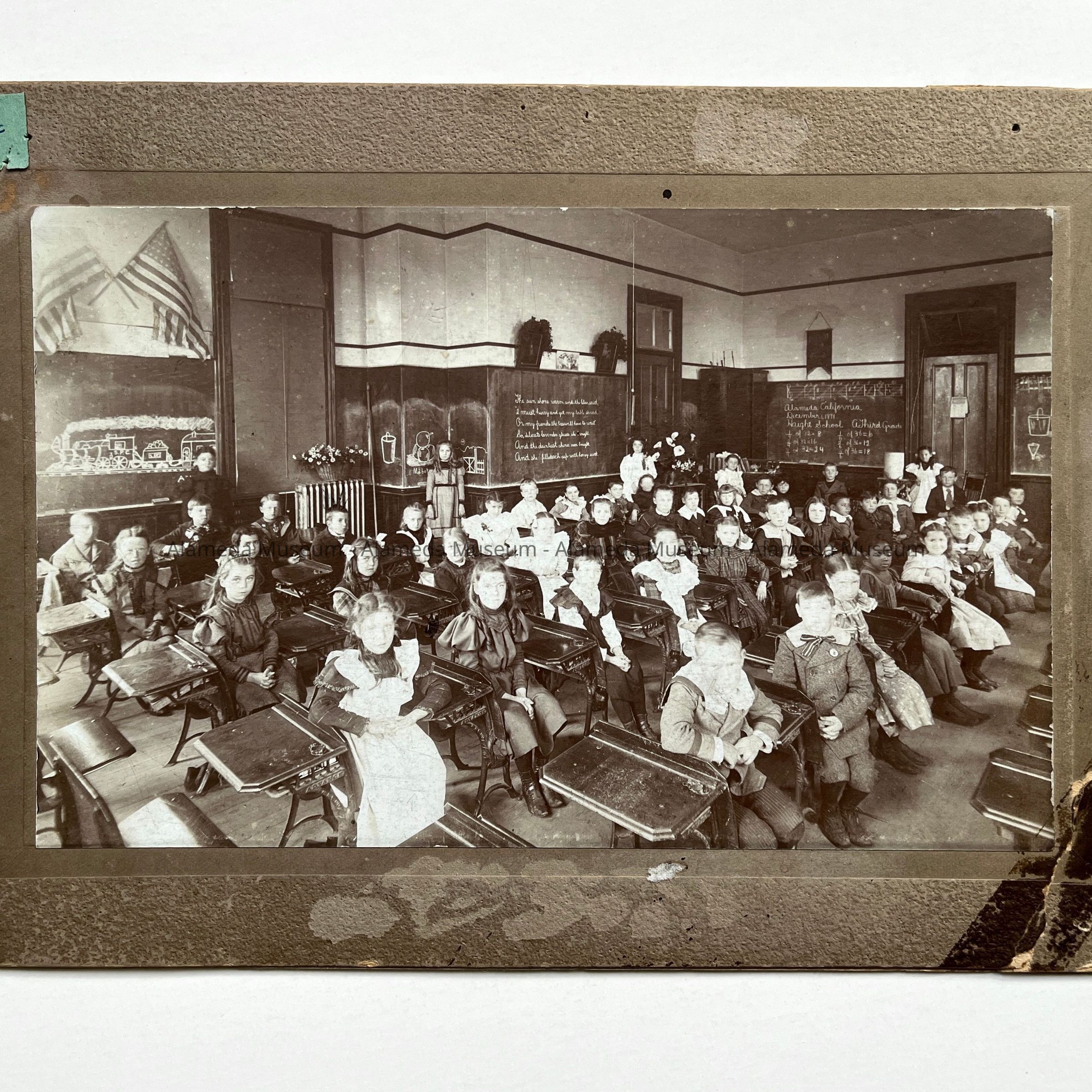 History of Object: Interior view, Haight School, 1898; Third Grade class at their desks.