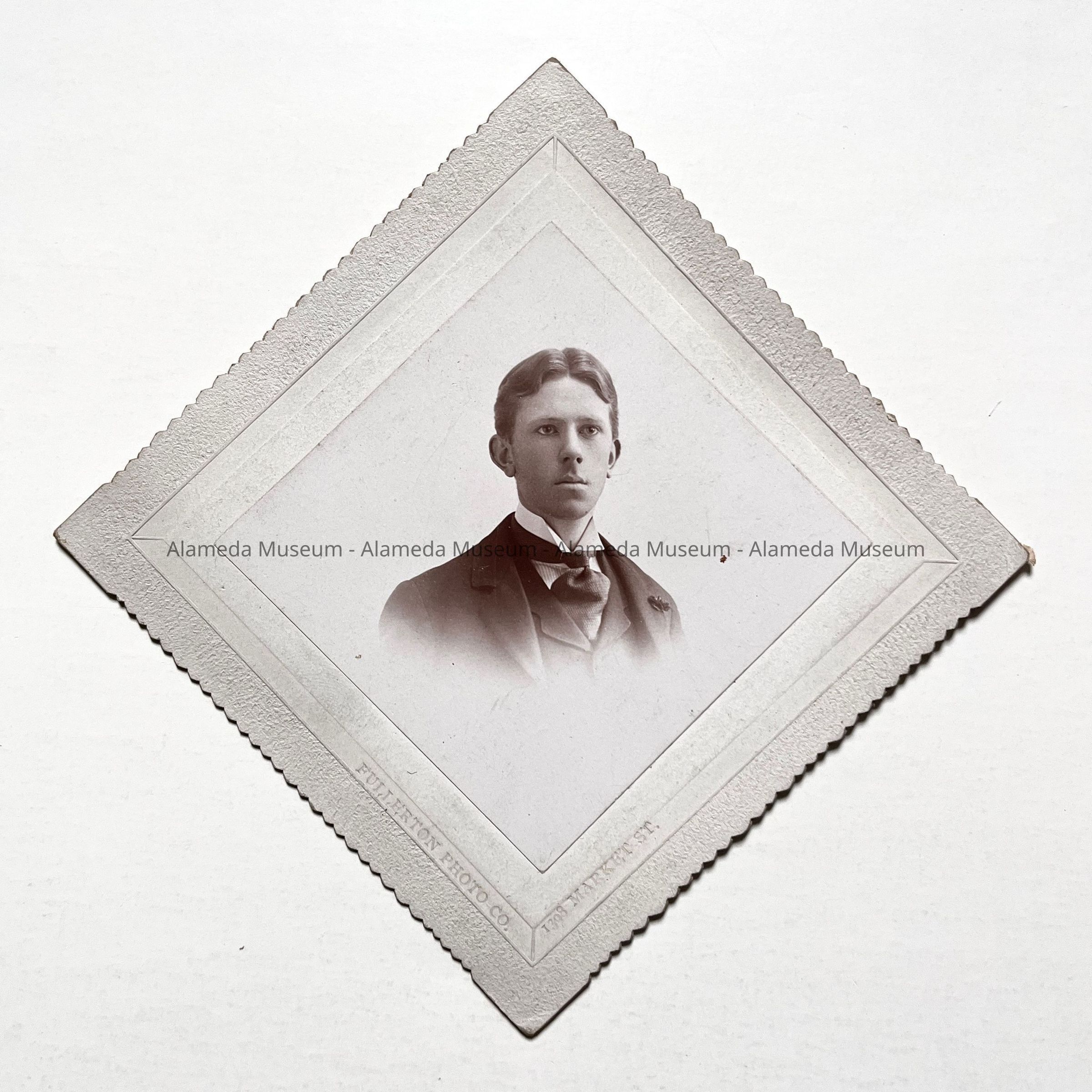 Description: Sepia tinted photograph, on unusual square mounting white backing, incised lettering "Fullerton Photo Co. 1398 Market St." On reverse side in ink "December, 1895".