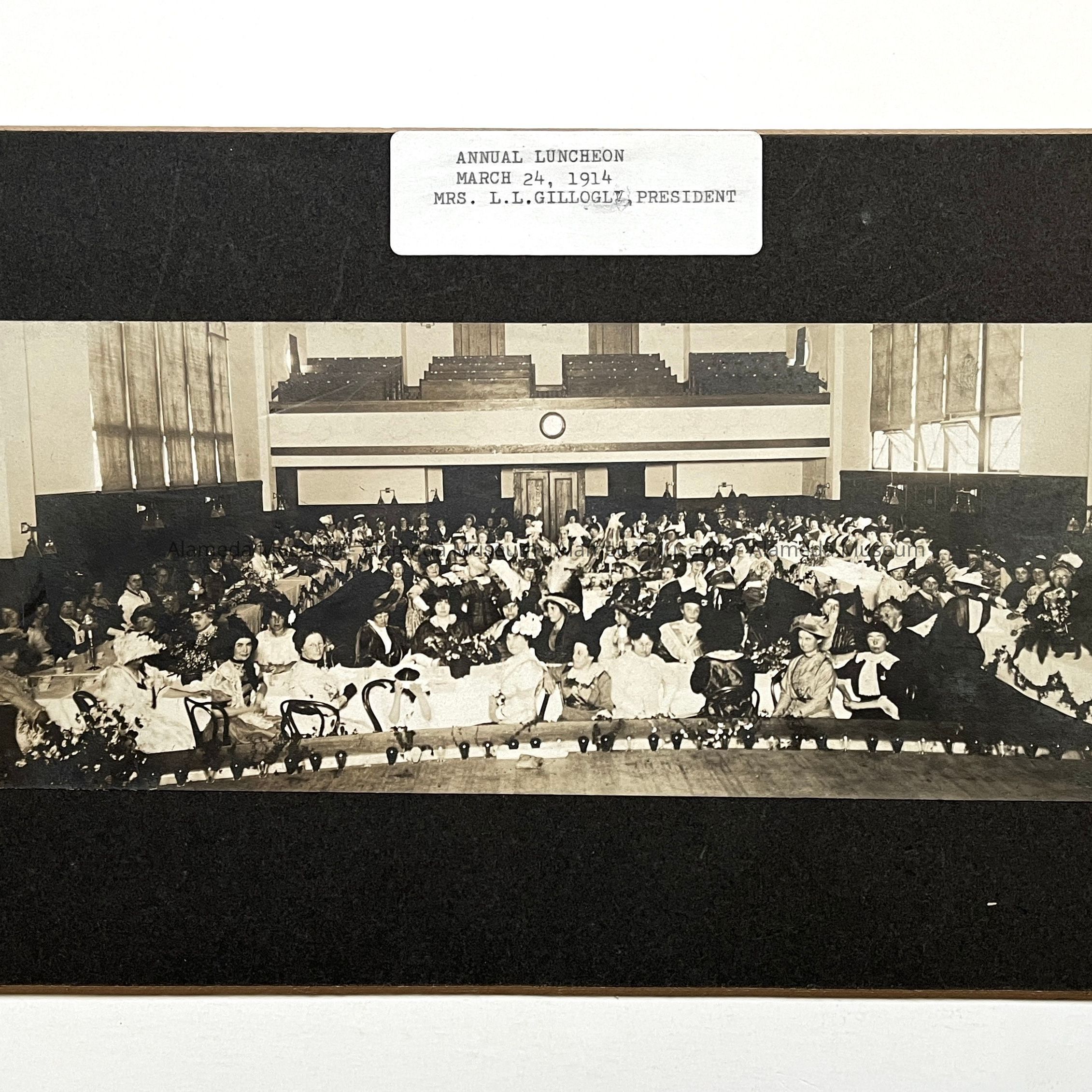 A PHOTO OF THE INTERIOR MEETING HALL AND MEMBERSHIP GATHERING AT THE ANNUAL LUNCHEON ON MARCH 24, 1914 AT THE ADELPHIAN CLUB.