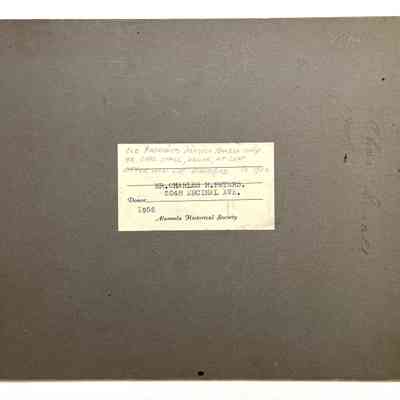 Description: Sepia-toned photo mounted on grey paperboard. Photographer unknown. old cataloging sticker affixed to upper left margin of mounting.