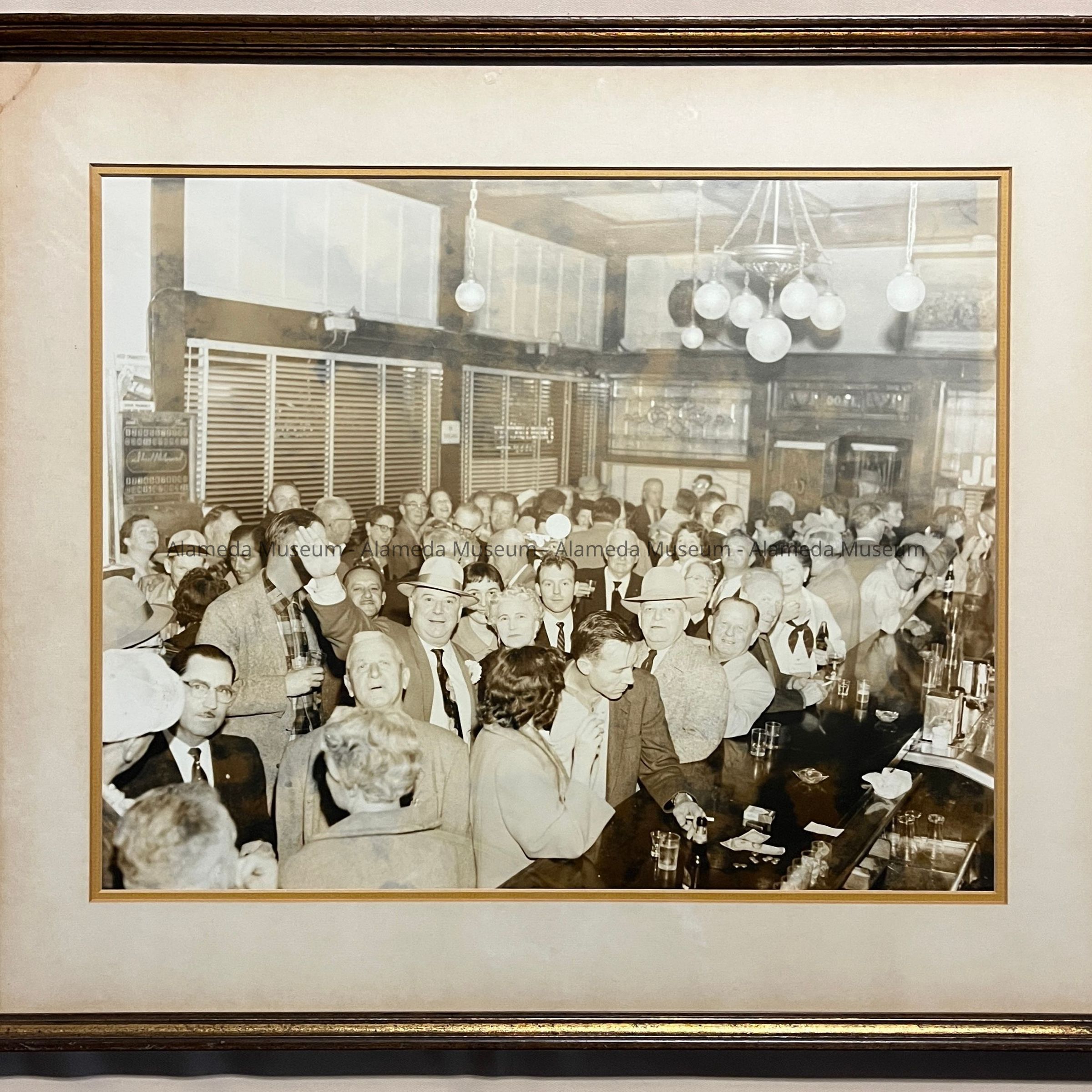 Interior photograph showing patrons of Crolls bar, Central and Webster Street, late 1940's or early 1950's. Due to the number of people in bar, both men and women, we can assume that the photograph was taken on a special occasion.