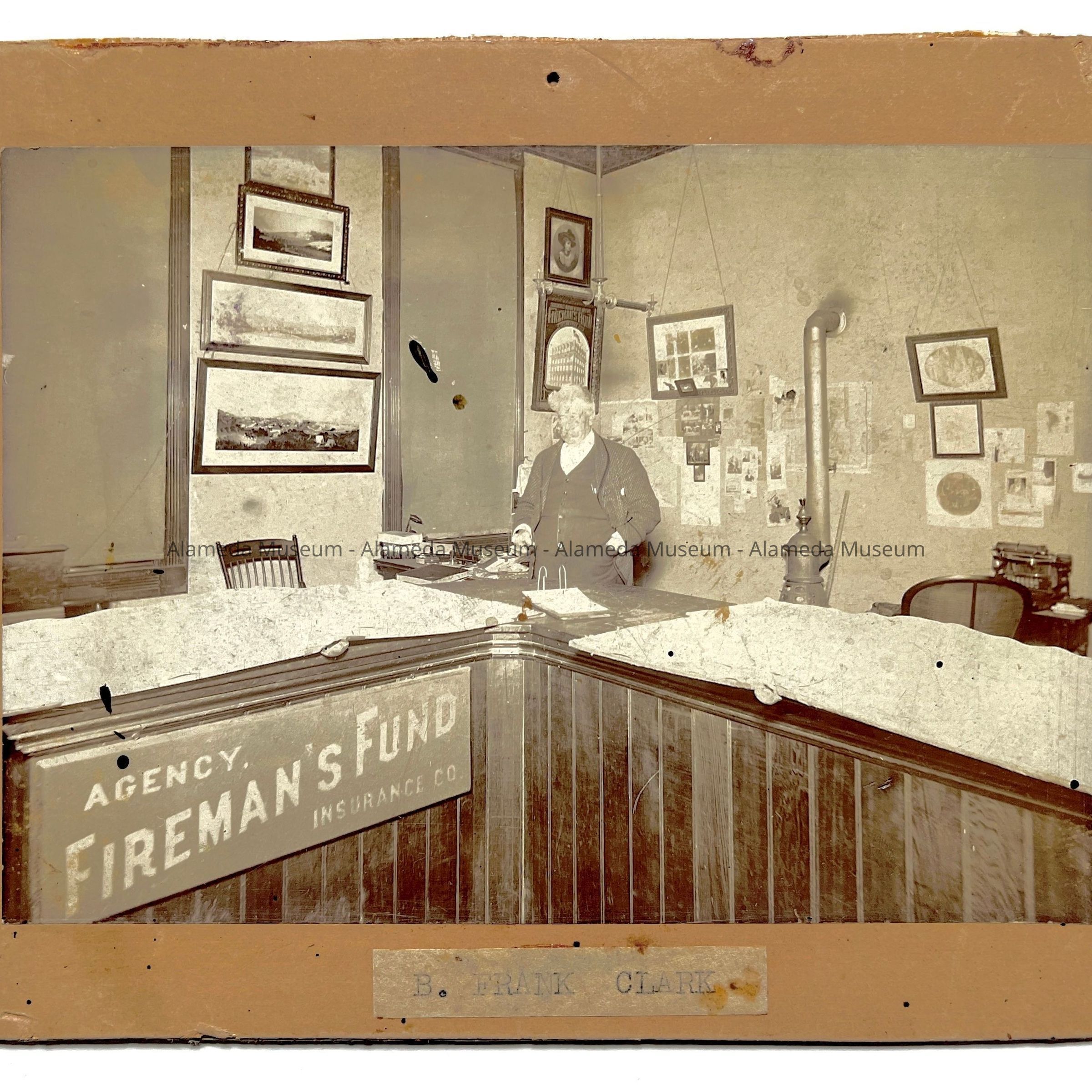 Photo Interior Fireman's Fund Insurance Agency, with agent B. A. Clark, c. 1900Entry/Object ID