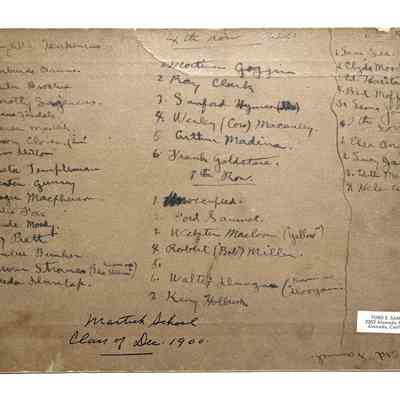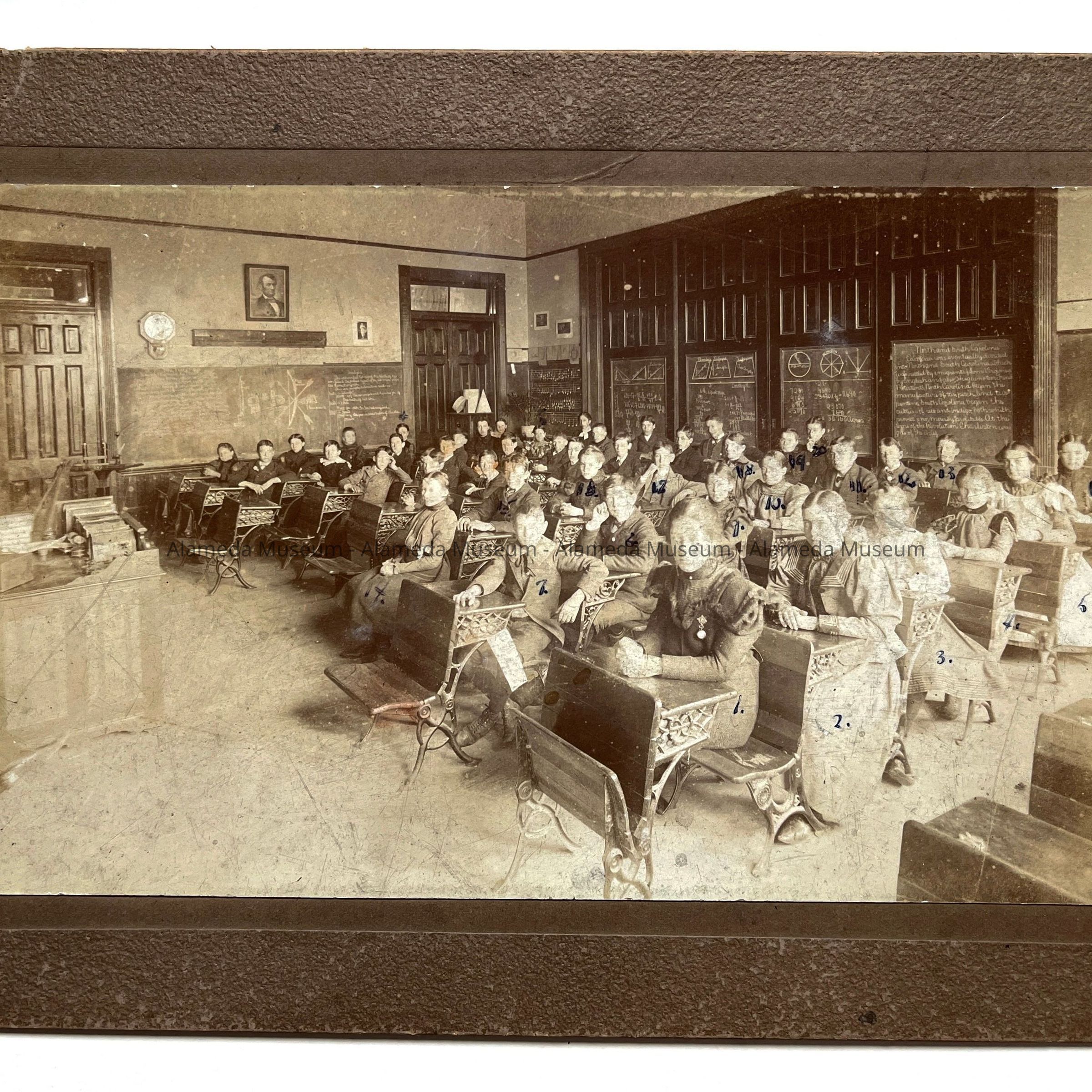 History of Object: Interior view of a Mastick School classroom showing the Class of Dec., 1900 seated at their desks.