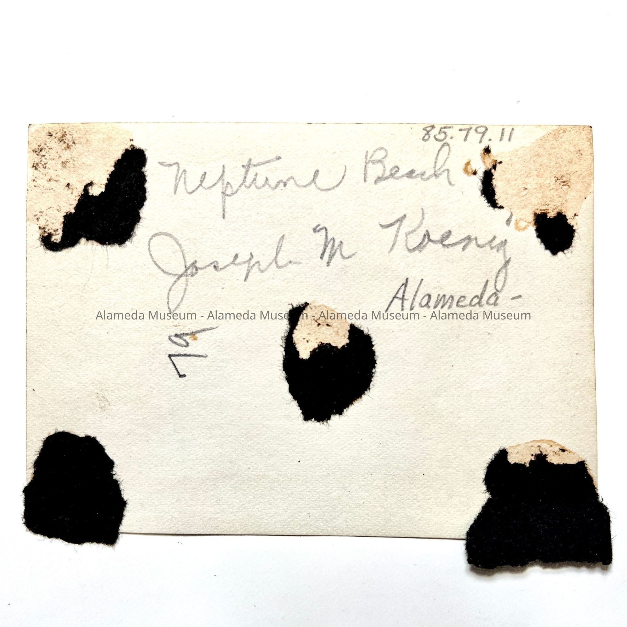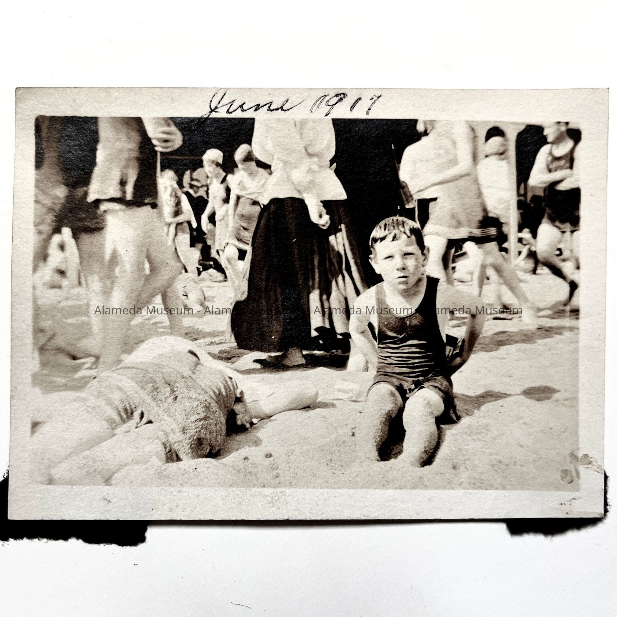 History of Object: Photo of Joseph (Joey) M. Koenig at Neptune Beach, June, 1917, Alameda. Member of an old-time Alameda family.