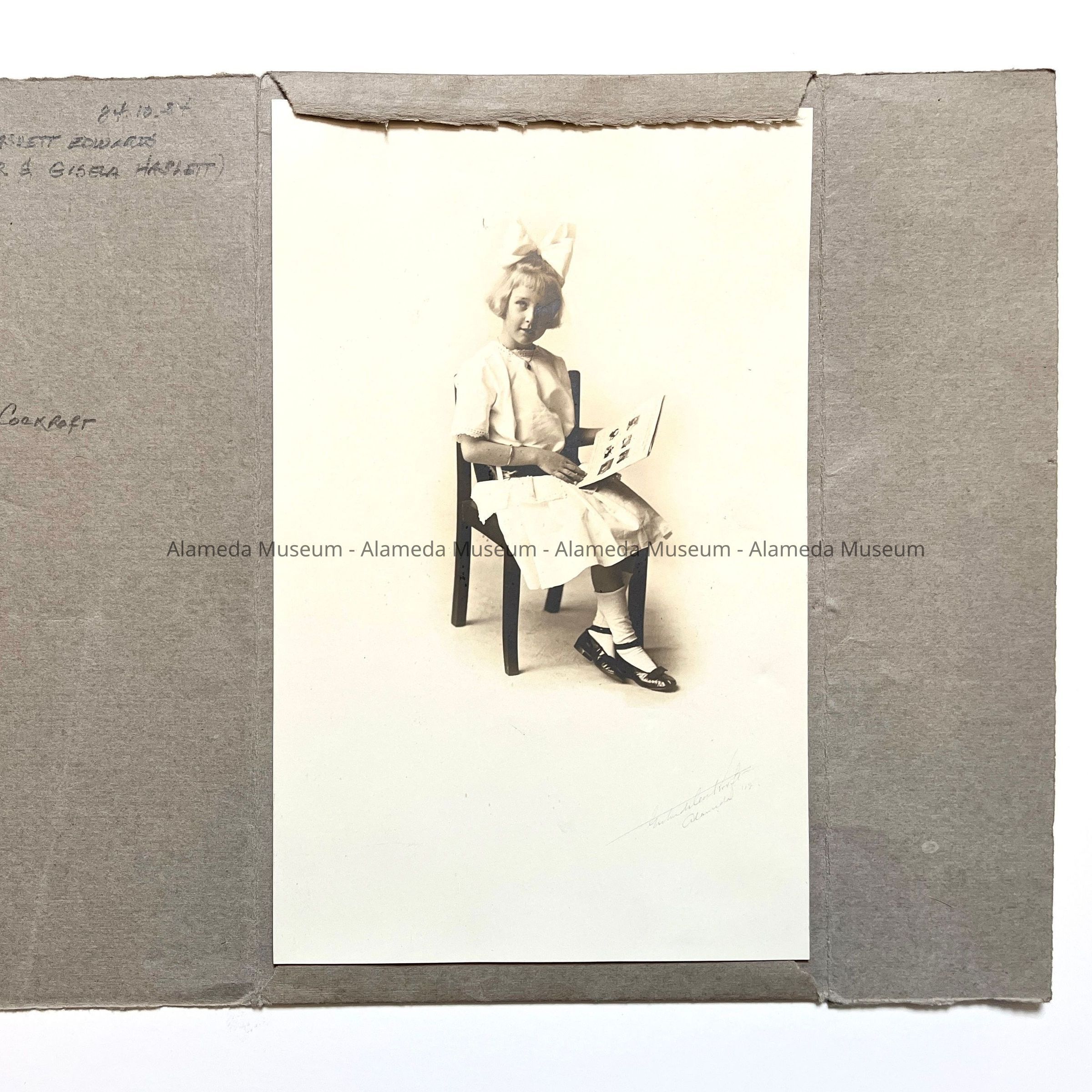 History of Object: Photo of Kathleen Elizabeth, daughter of Oliver & Gisela Haslett, member of a pioneer Alameda family.