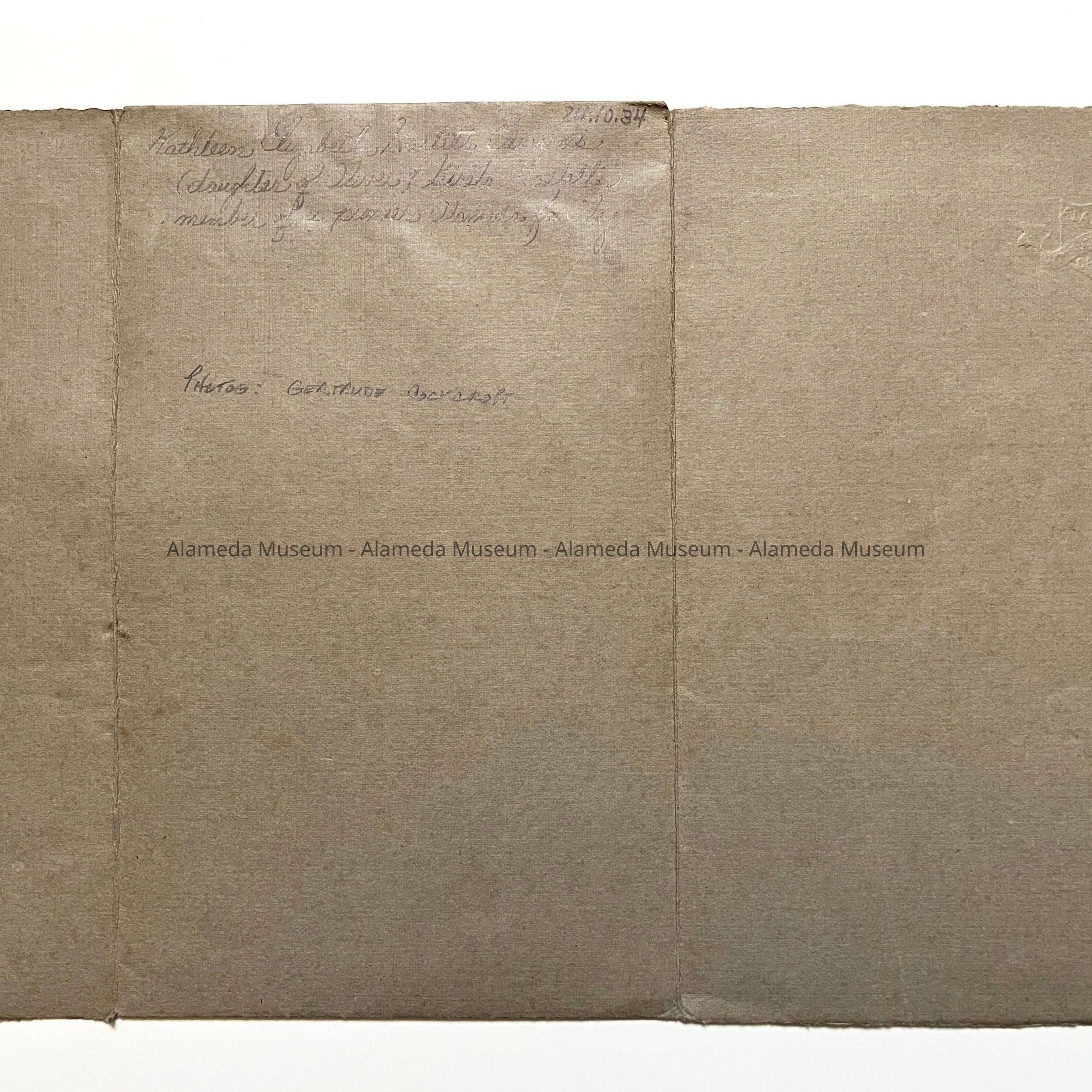Description: Sepia tinted photo, mat finish, in pale grey-colored jacket. Photo & jacket signed "Gertrude Cockcroft, Alameda".