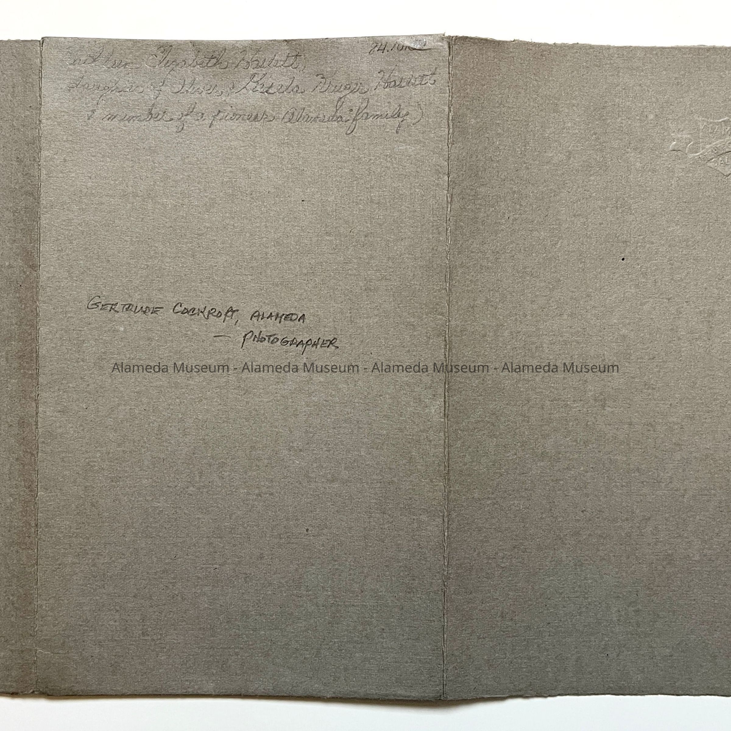 DESCRIPTION: Pale sepia photograph signed in pencil "Gertrude Cockcroft 1912" in its original cover.