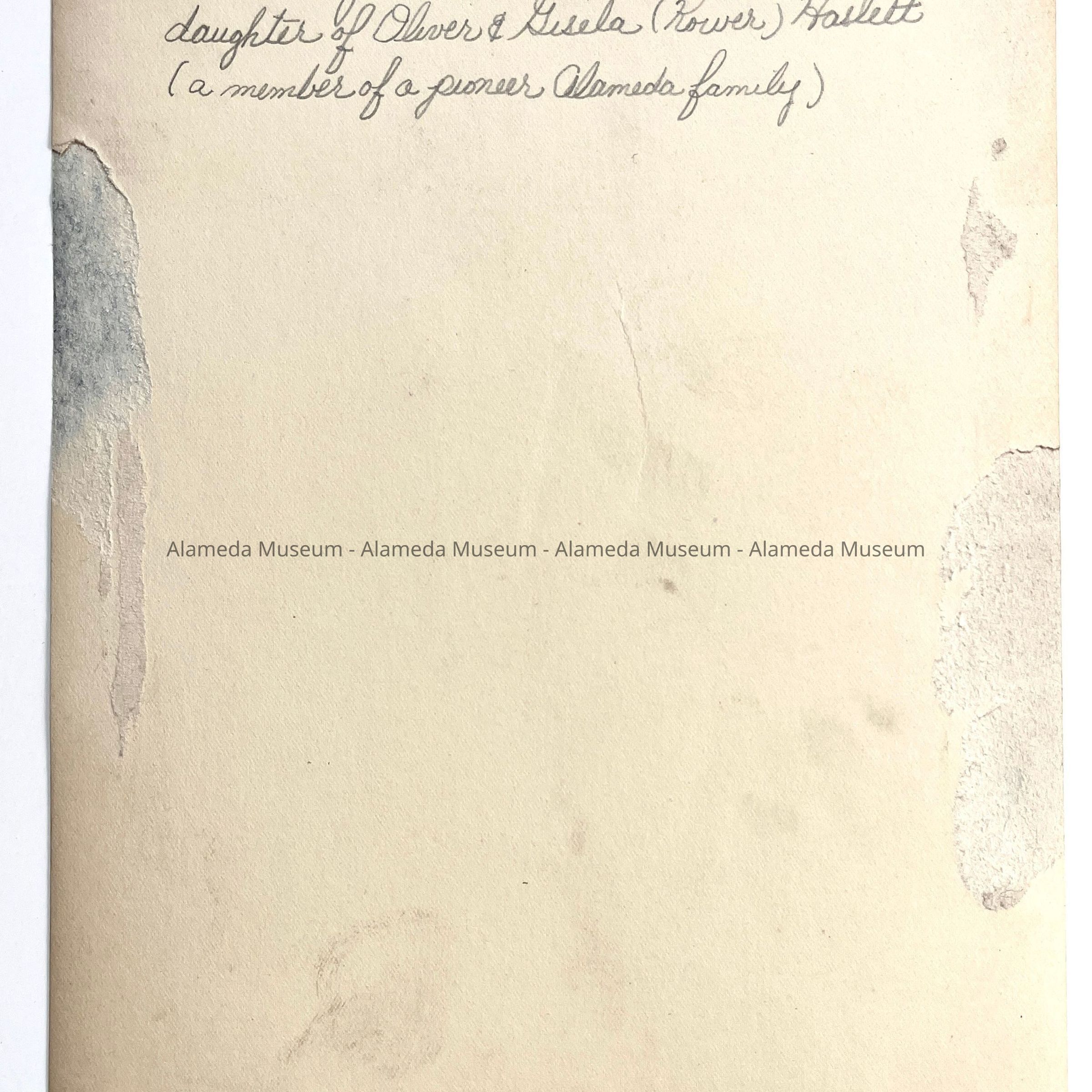 HISTORY OF OBJECT: Photograph of Kathleen Elizabeth Haslett Edwards, daughter of Oliver and Gisella Haslett, members of a pioneer Alameda family.