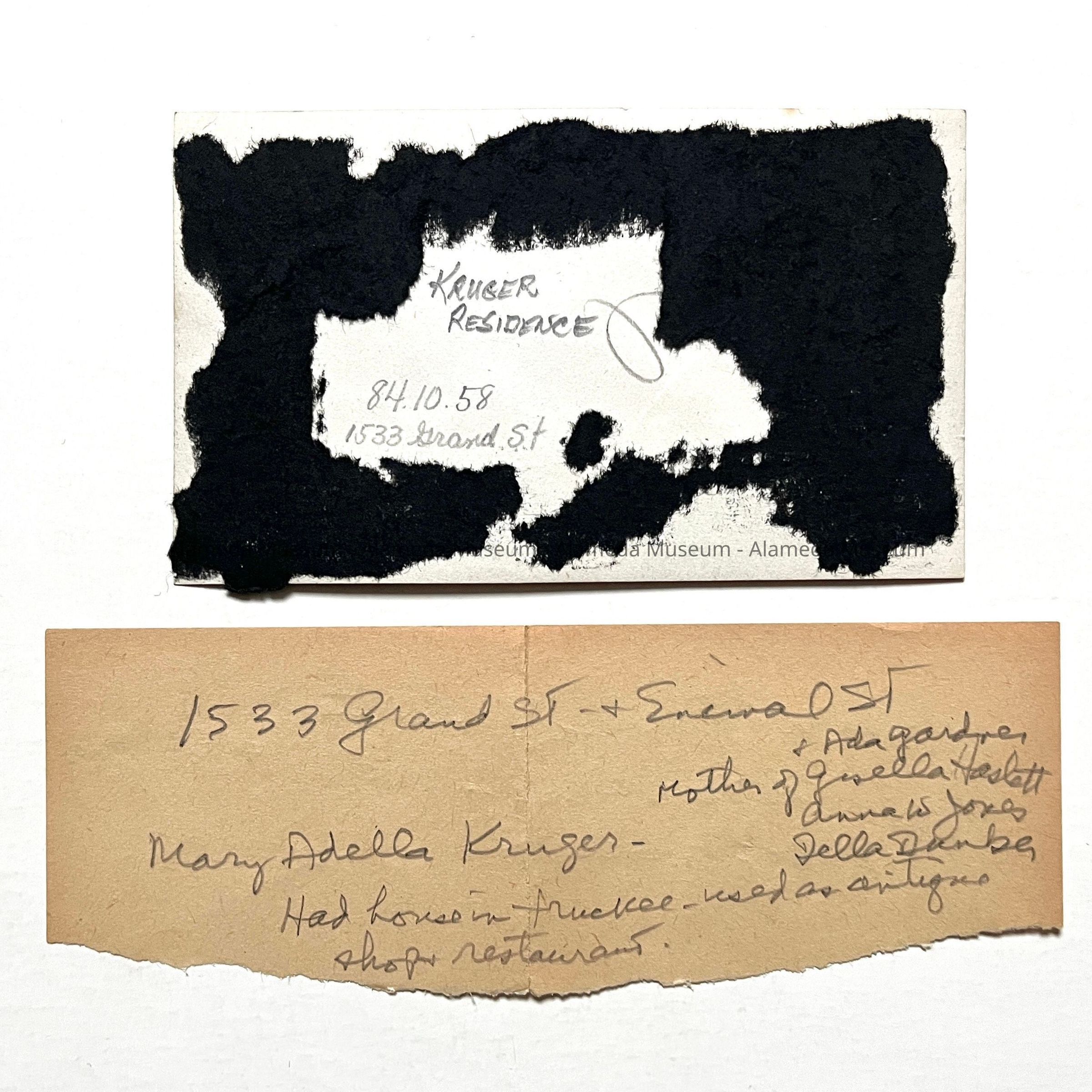 HISTORY OF OBJECT: Photograph of an Italianate residence that stood at 1533 Grand Street; home of Mary Adella Kruger, mother of Gisella Kruger Haslett, the latter being the wife of Oliver Haslett. All were members of pioneer Alameda families.