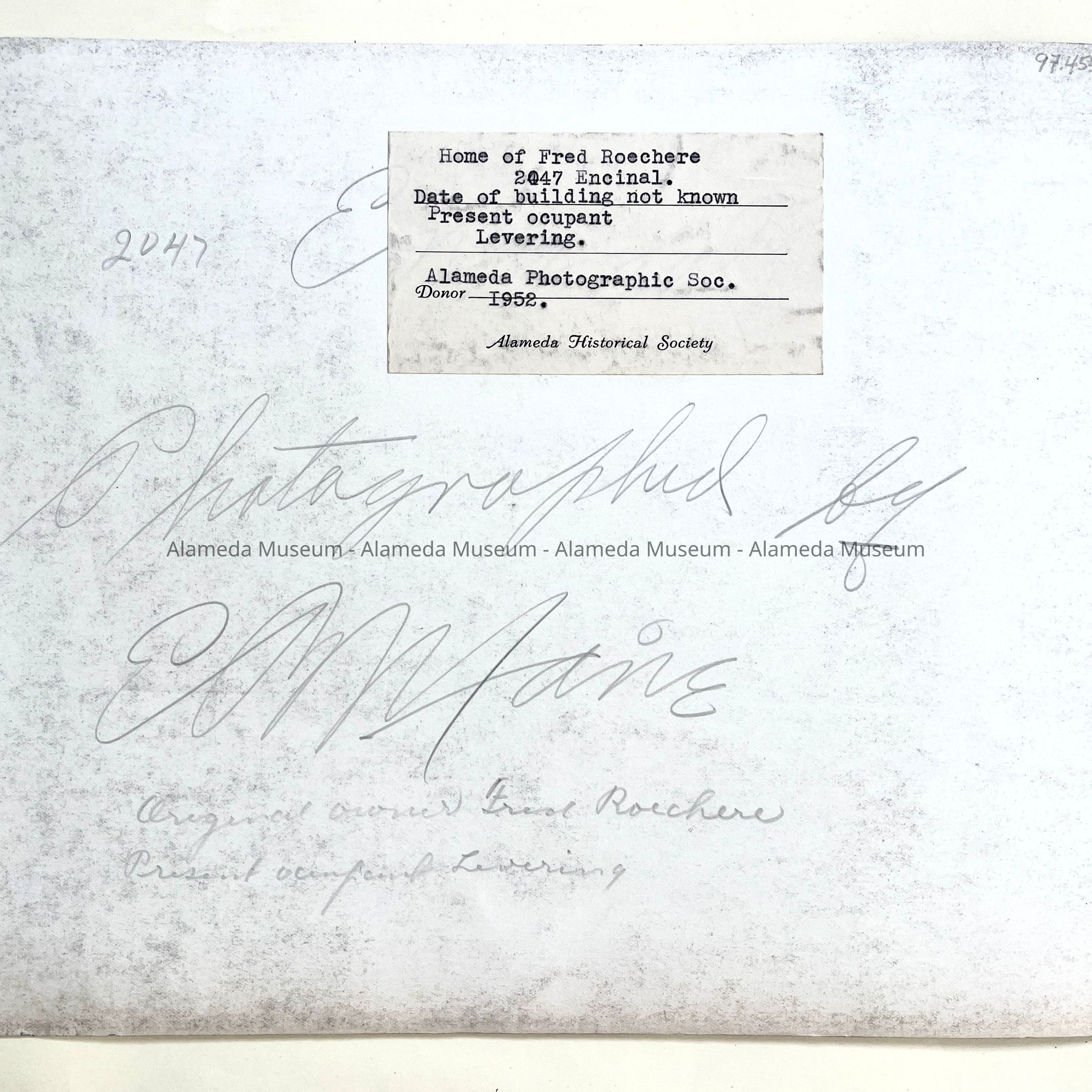 Photo main facade 2047 Encinal, 1952Entry/Object ID